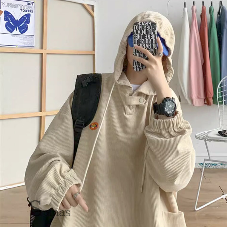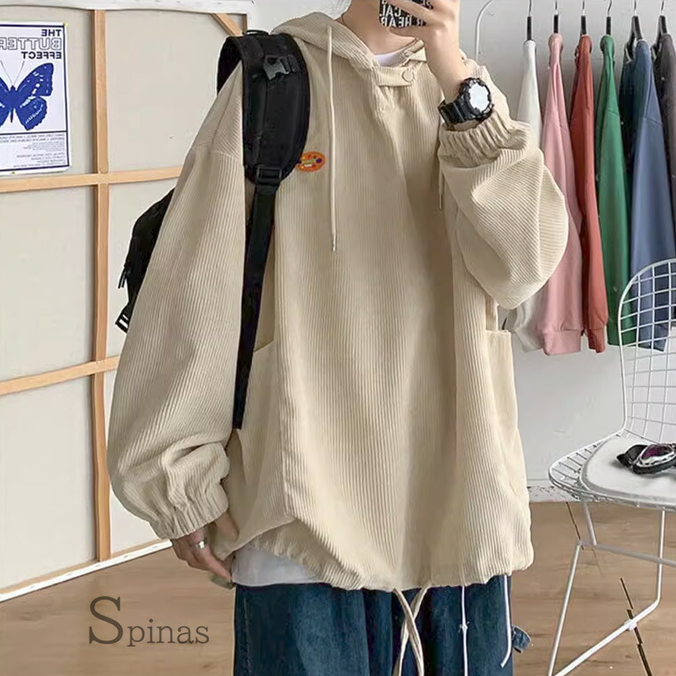 かわいい系男子に 裾しぼってコロンとし トップス パーカー 続々登場 M L XL 2XL ピンク ブラック イエロー ブルー ベージュ