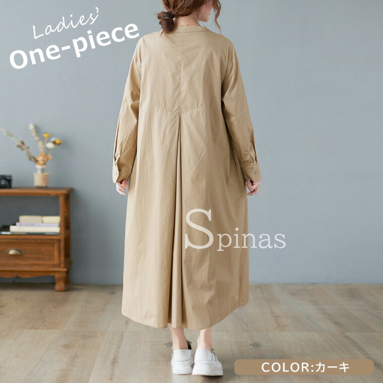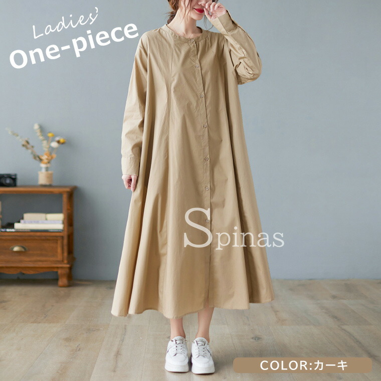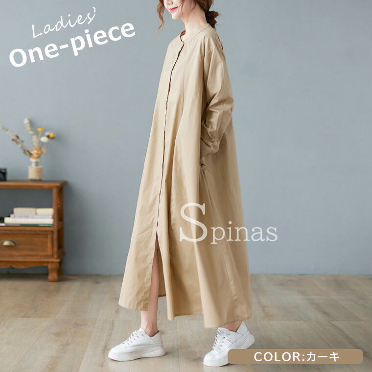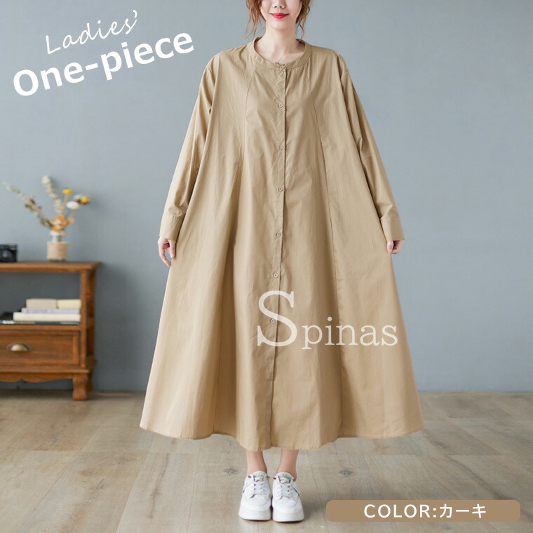 ゆったりロングデザインで1枚で決まるワ レディースファッション 続々登場 カーキ ブラック