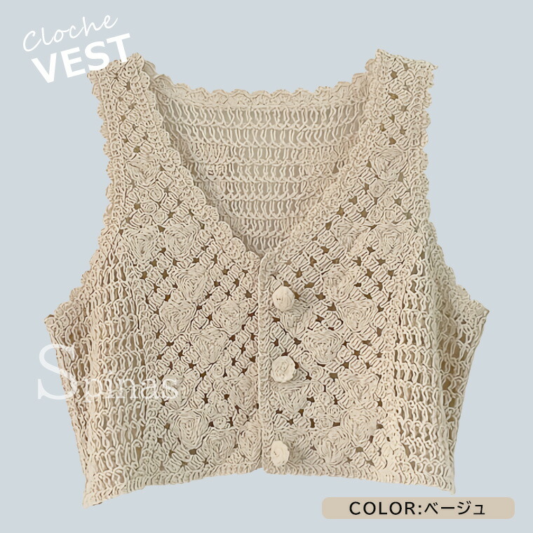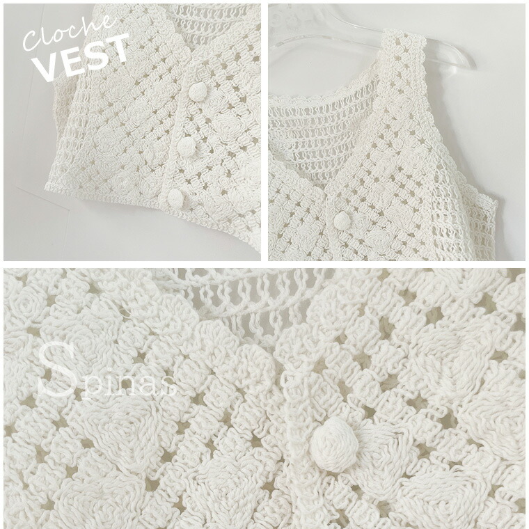 クロシェ ベスト レディース トップス トップス ベスト お得なセール ホワイト ベージュ