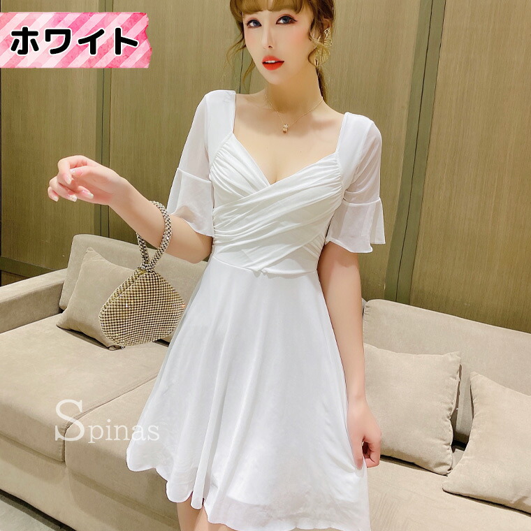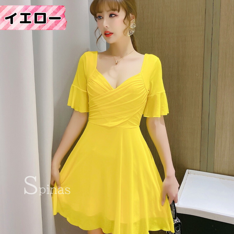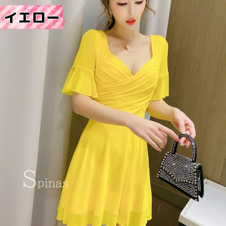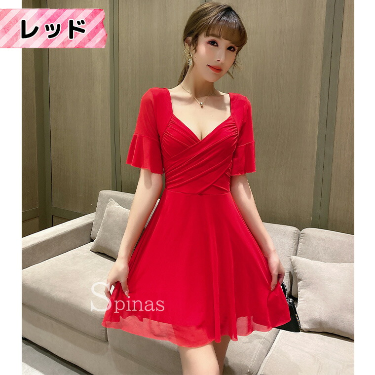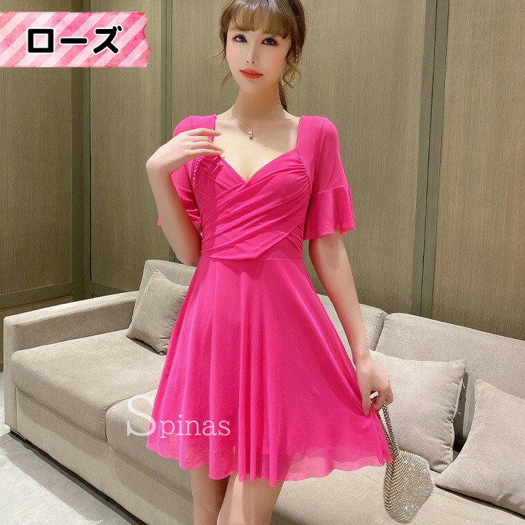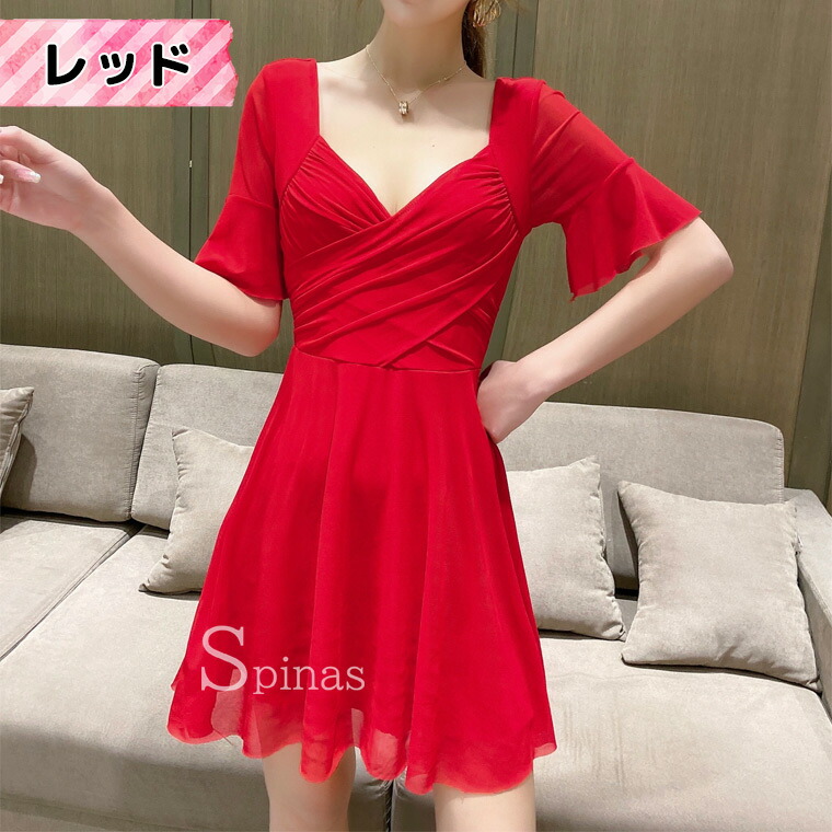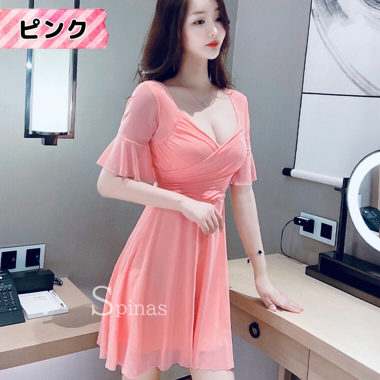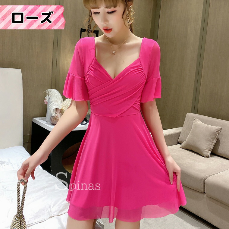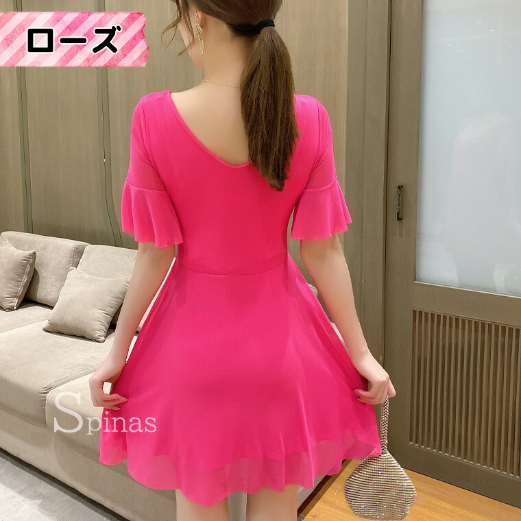 二の腕かくして着やせ効果 五分袖ワンピ ワンピース 42%Off レッド ピンク ローズ ブラック ホワイト イエロー ブルー S M L XL 2XL