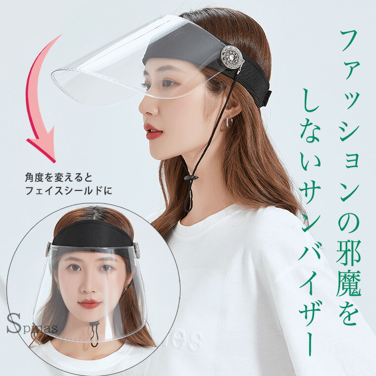 サンバイザー フェイスシールド 透明バイザー クリア UVカット フェイスガード フェイスカバー マスク 晴雨兼用 顎紐 角度調整可能