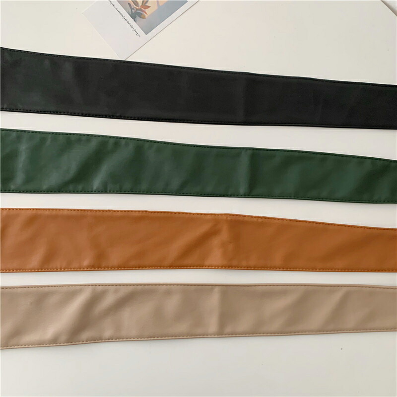 ウエスト周りをすっきり見せる!全4色 ウッド調バックル サッシュベルト PU フェイクレザー 太ベルト バックルレス ウエストマーク