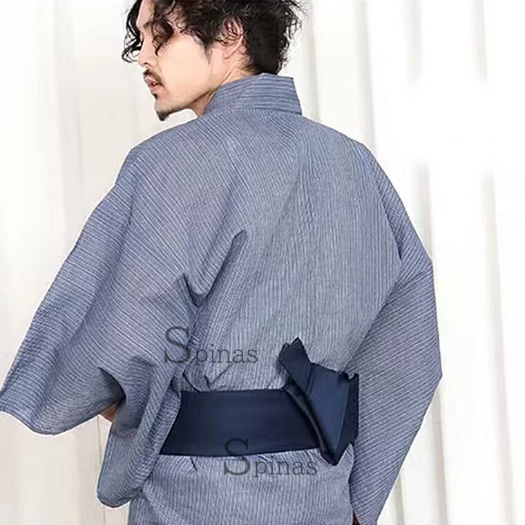 ワンタッチ簡単装着 和モダンお洒落 和服 浴衣帯 メンズ 角帯 ワンタッチ帯 マジックテープ 作り帯 紺黒系 縞柄 着物 浴衣 男帯 コスプレ