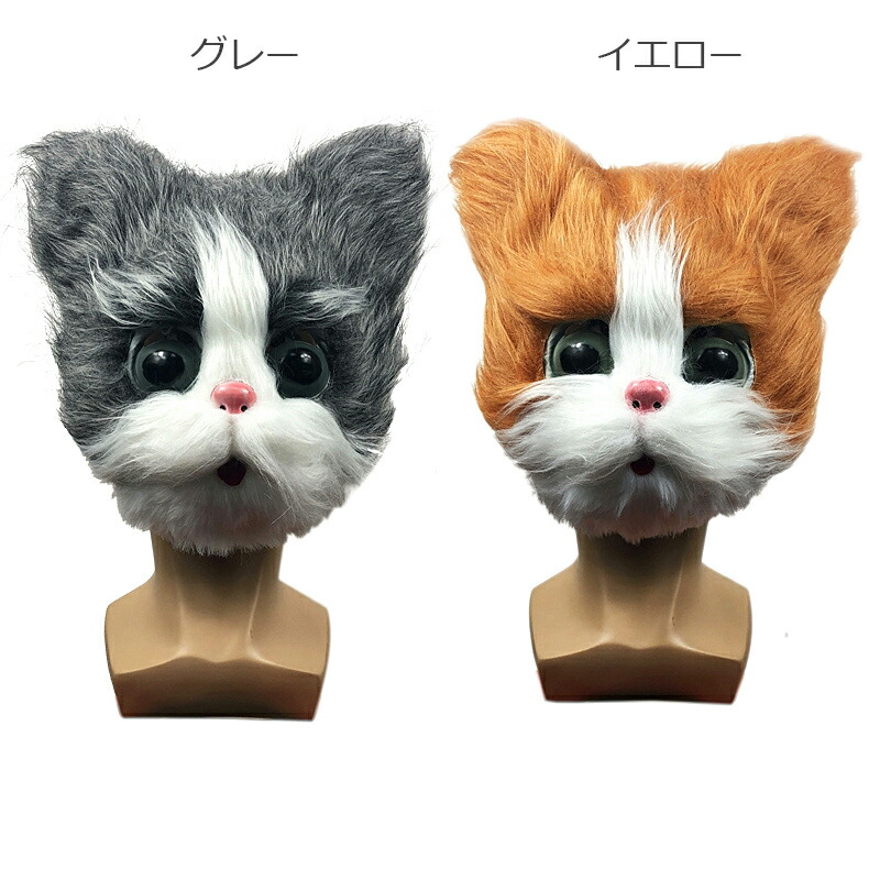 可愛い猫に変身 キャットマスク ネコ グレー イエロー