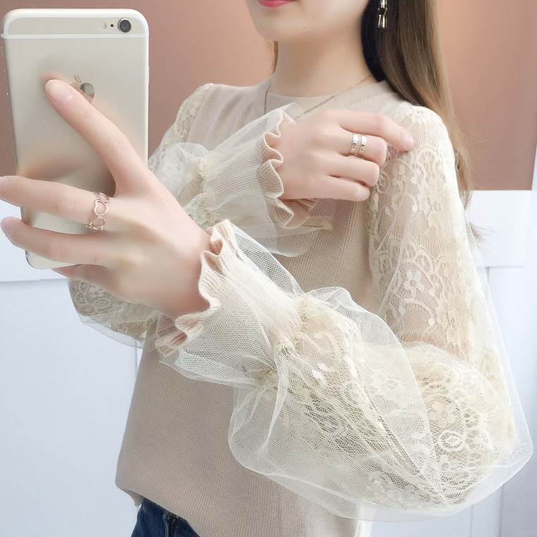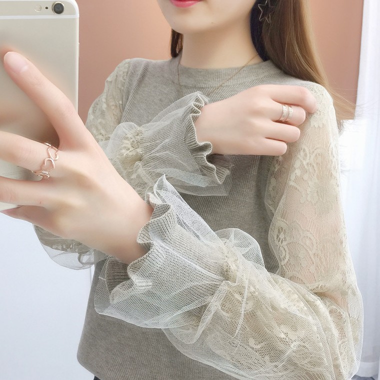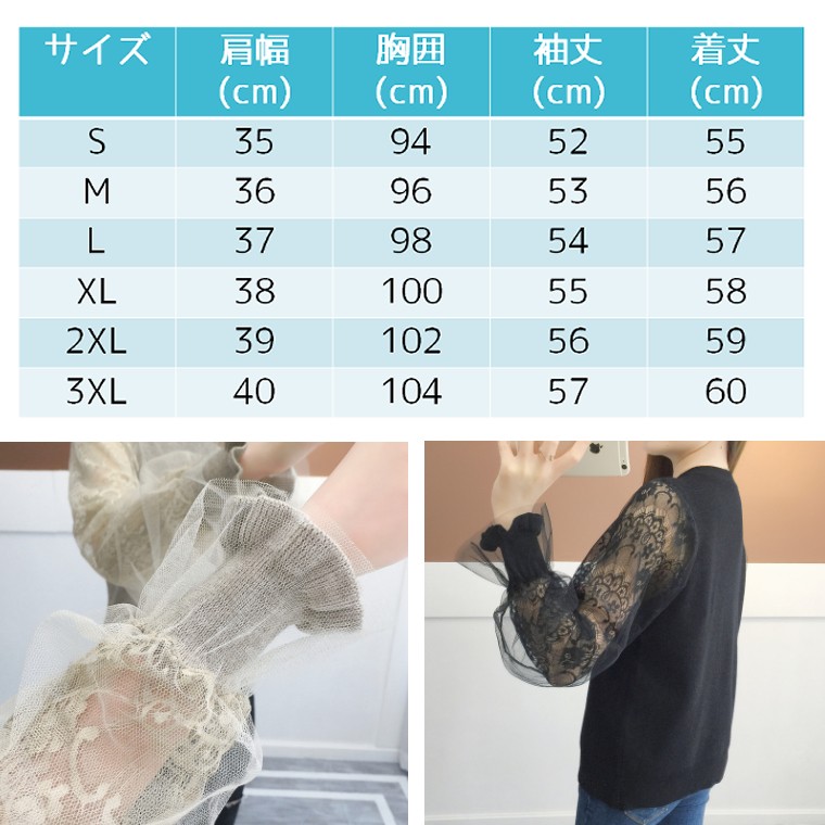レース袖で美しく決まる シアースリーブ レディースファッション 42%Off グレー ブラック カーキ ベージュ S M L XL 2XL 3XL