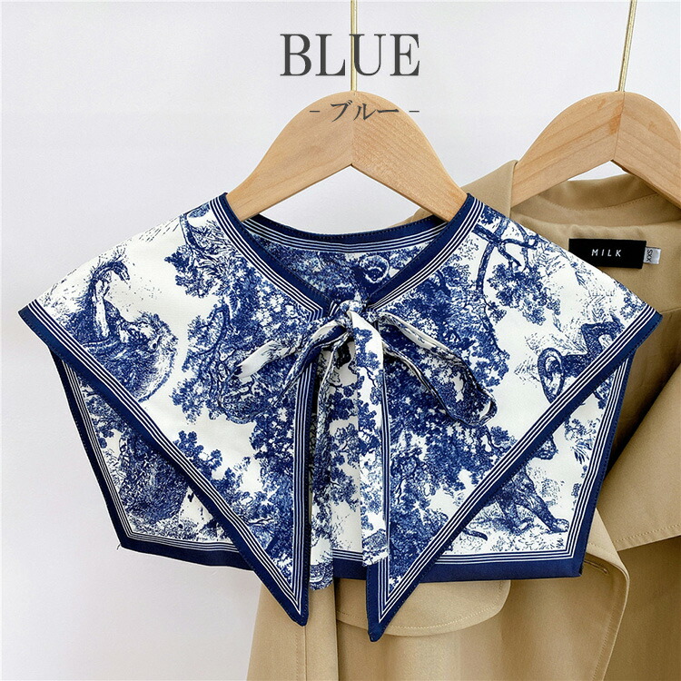 お洋服の雰囲気をガラッと変えられる!大人可愛い セーラー風 付け襟 総柄 スカーフ風 レディース ビッグカラー つけ衿 ロングシーズン 肩かけニ とんがり ブラウス シャツ 重ね着風