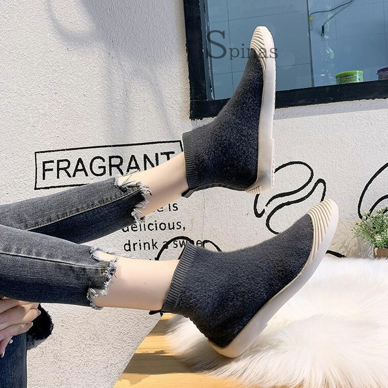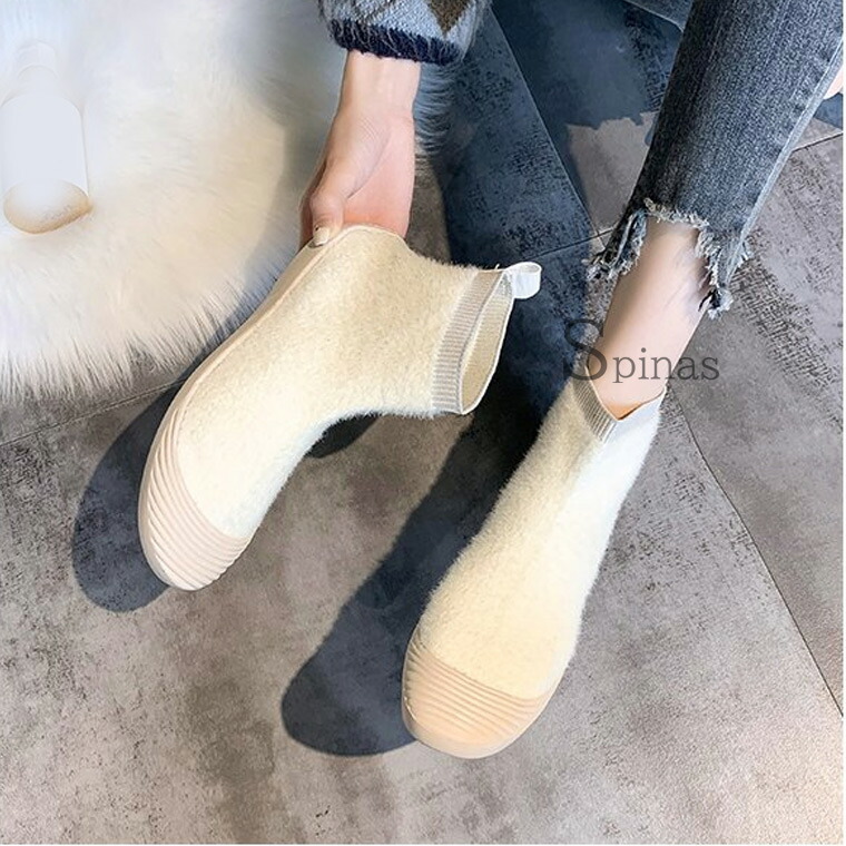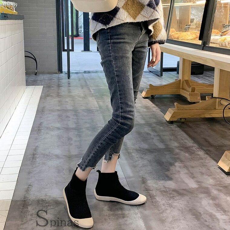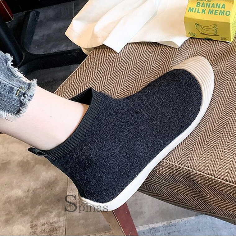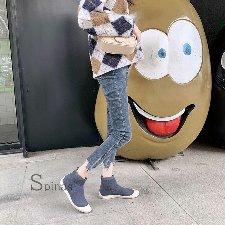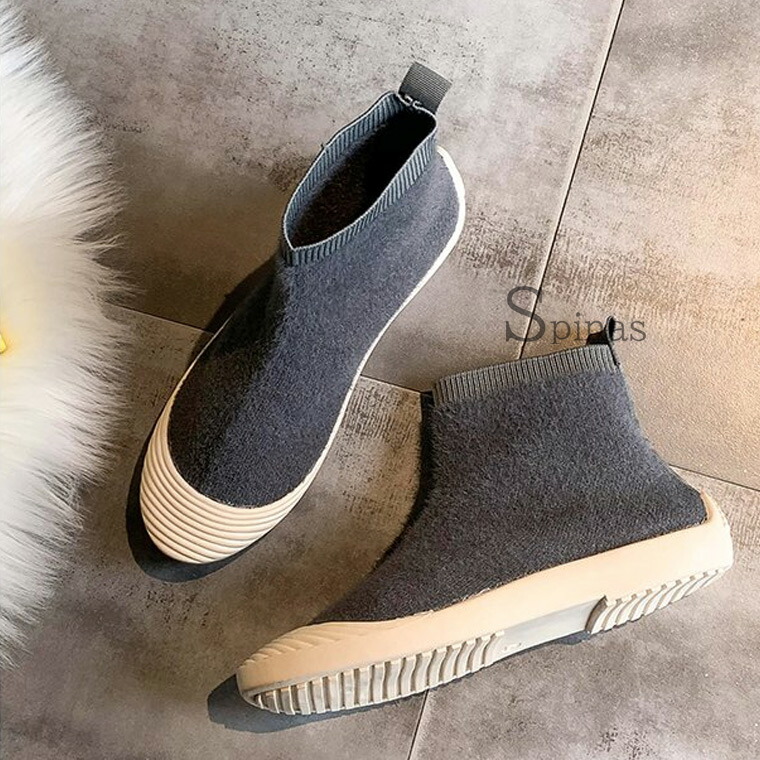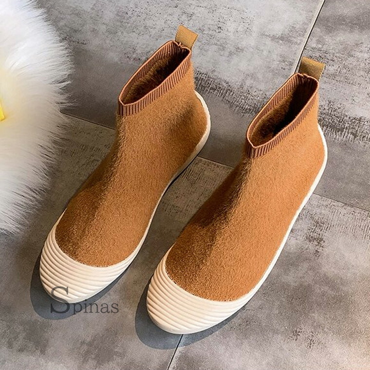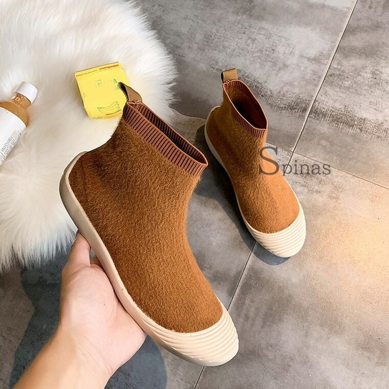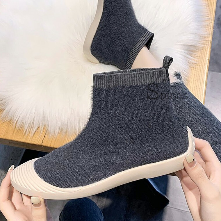 ムートンでもボアでもない 新しくお洒落なニットブーツ ムートン風ブーツ ボアブーツ ハイカット リブ スニーカー フラット