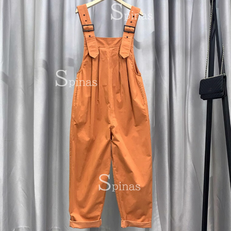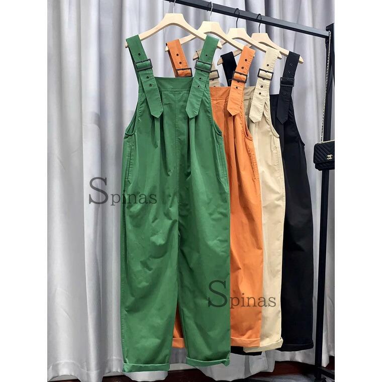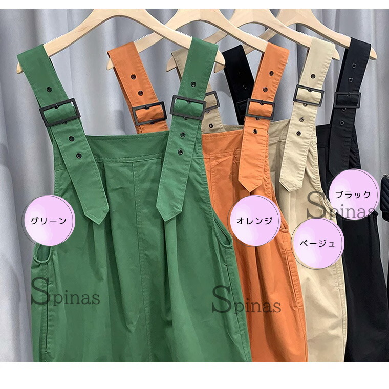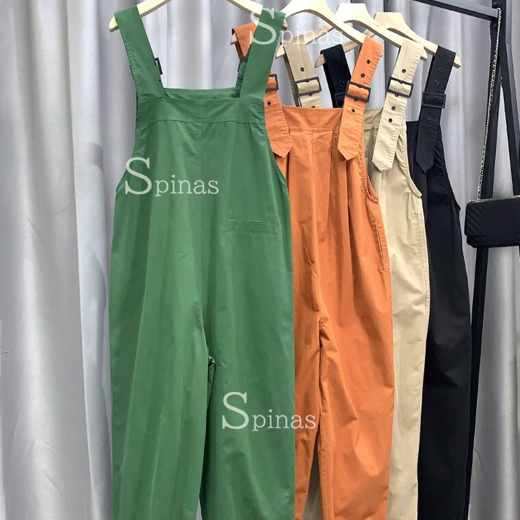 胸タックがお洒落シルエット サロペット オールインワン サロペット お買い得 ブラック オレンジ ベージュ グリーン M L XL