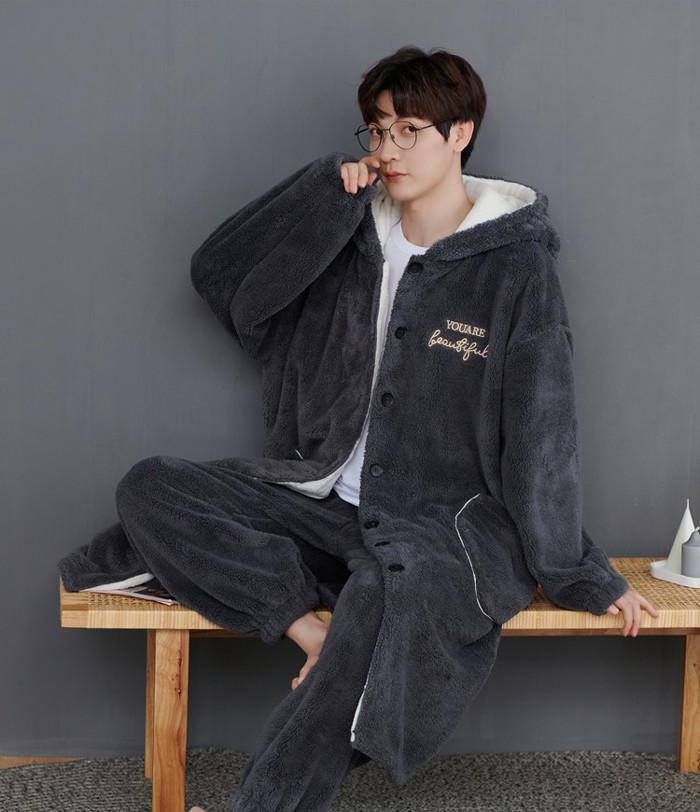 ガウン メンズ パジャマ 冬 長袖 大