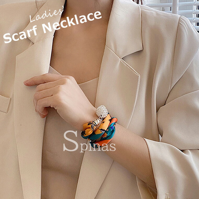 簡単ワンタッチでスタイルが完成するレディース用スカーフネックレスのご紹介です♪ レディース スカーフ ネックレス 簡単 ワンタッチ マグネット ブレスレット アクセサリー