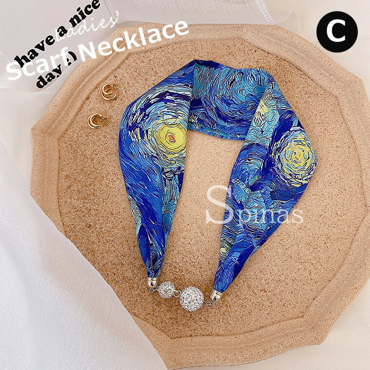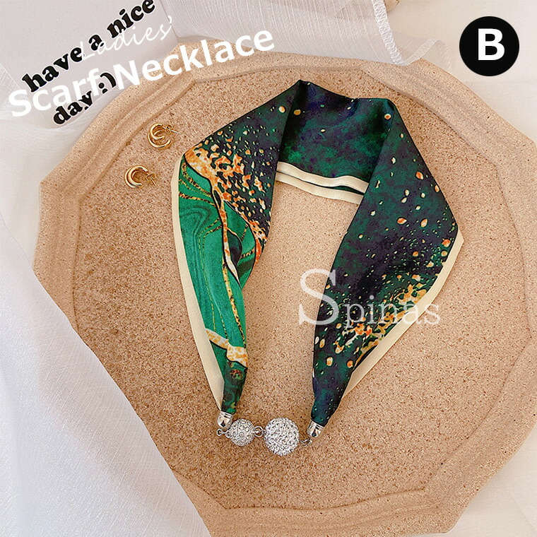 マグネット式で簡単ワンタッチのスカーフネックレス♪ スカーフ ネックレス 簡単ワンタッチ マグネット レディース スカーフアクセサリー アクセサリー 小物 全8柄