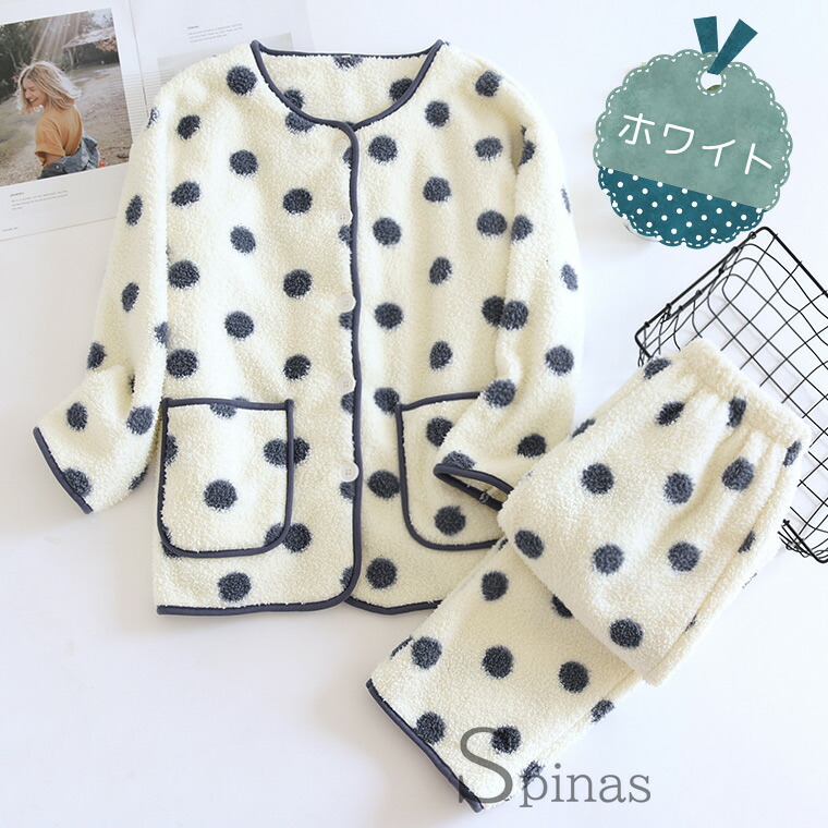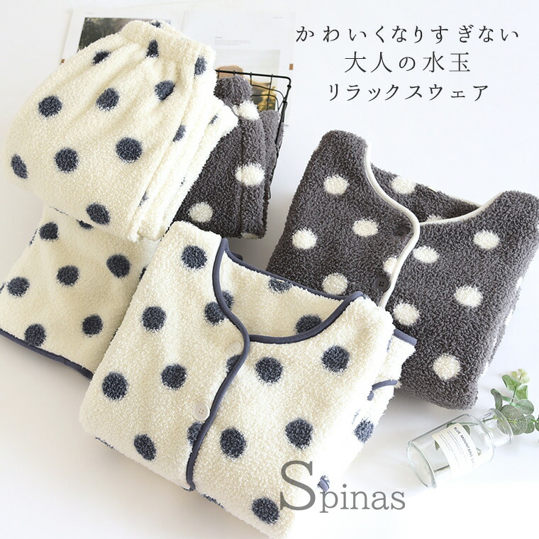 大人の水玉 両面ボア 40代 50代 インナー 下着 ナイトウエア 特集 ホワイト グレー M L XL