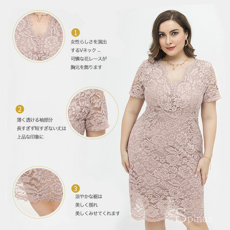 豪華な総レース Vネックワンピース シ ワンピース 42%Off ピンク ブラック レッド XL 2XL 3XL 4XL