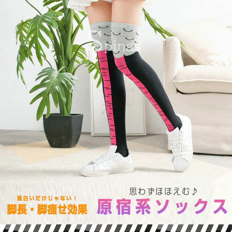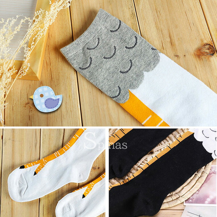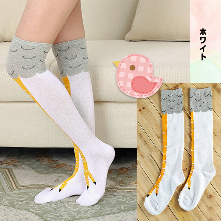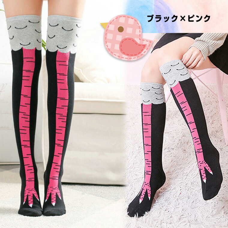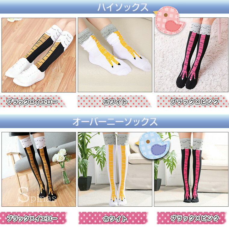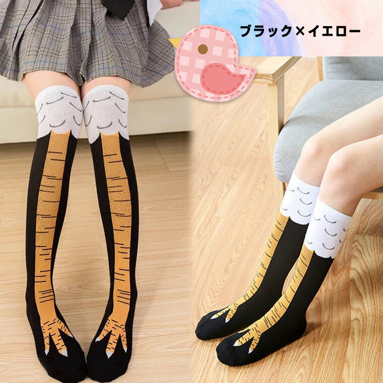 鳥足ソックス オーバーニー ハイソック ユニセックス 靴下 レッグウェア 人気 ブラック×イエロー ホワイト ブラック×ピンク オーバーニー2足 ハイソックス2足