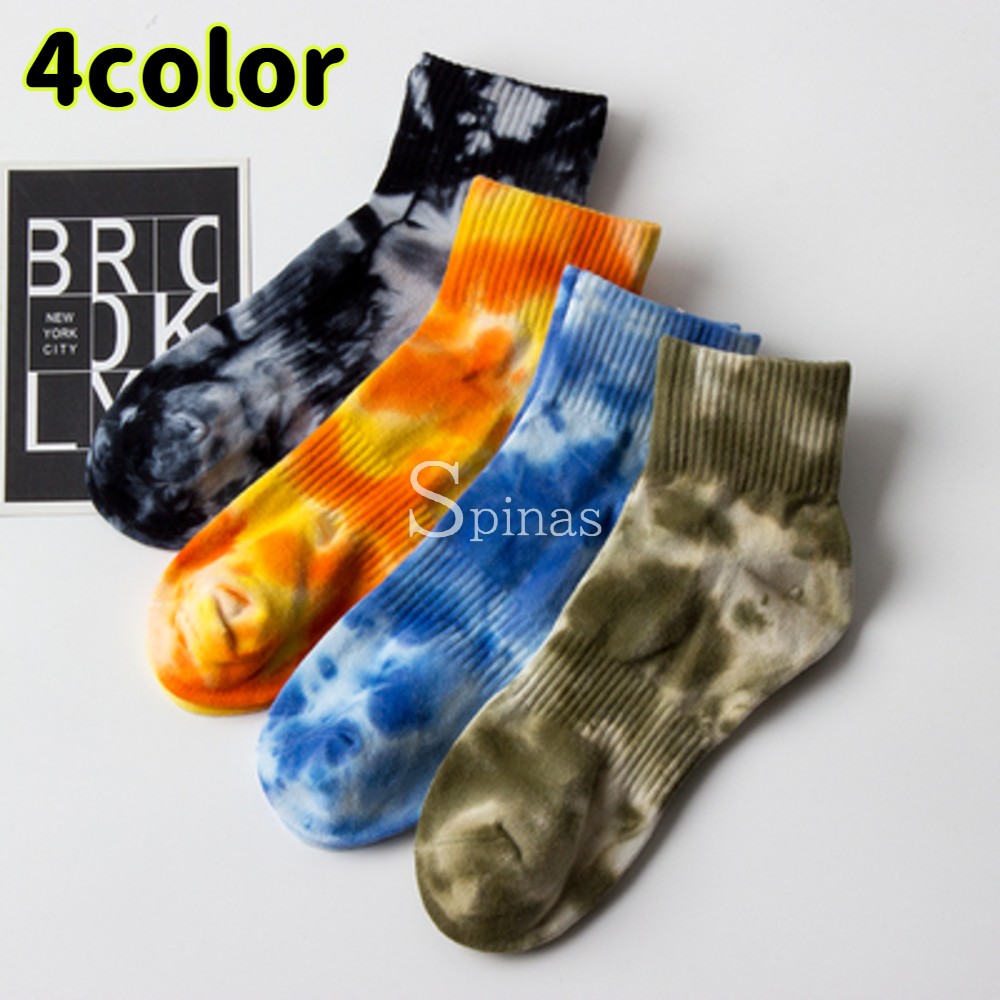 おしゃれな足元 タイダイ柄 靴下 ソッ アウトドア ウェア メンズウェア 靴下 新作 4color(4足組) オレンジ(4足組) カーキ(4足組) グリーン(4足組) ブラック(4足組) ブルー(4足組)