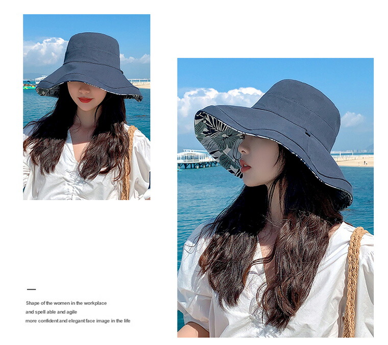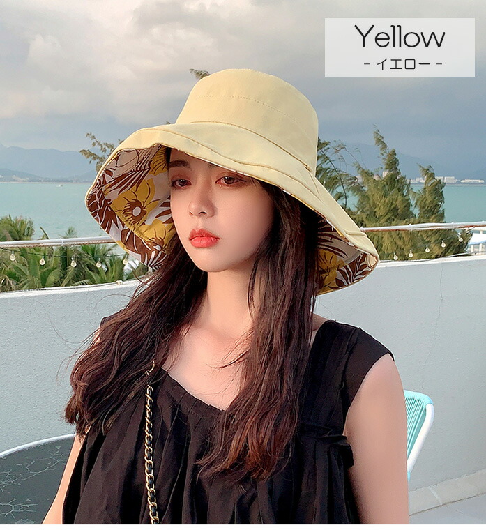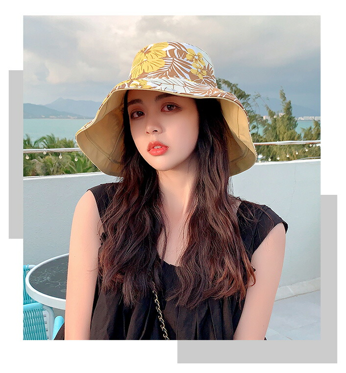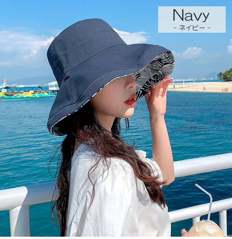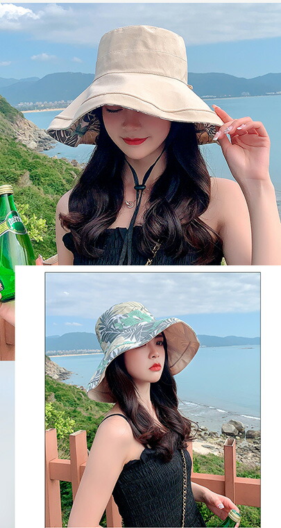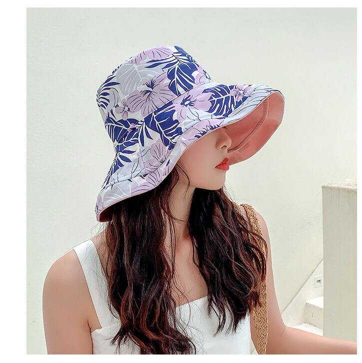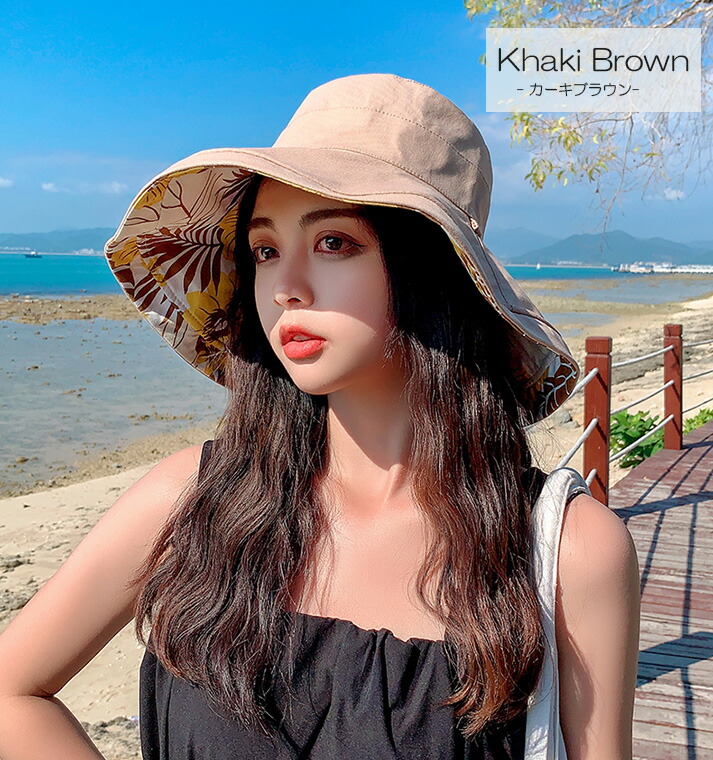 両面とも使える リバーシブル ハット リーフ柄&無地 両面使用 レディース バケツ帽子 ぼうし キャップ 紫外線対策 つば広 日よけ 折りたたみ おしゃれ
