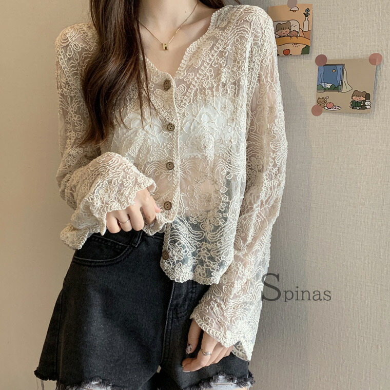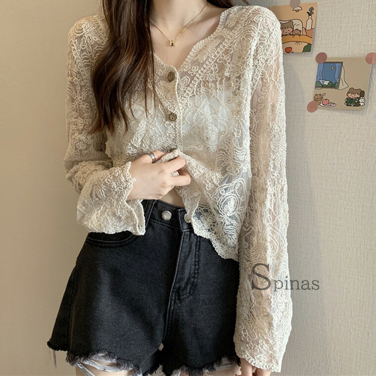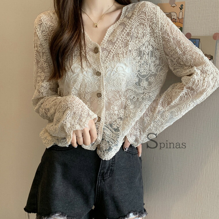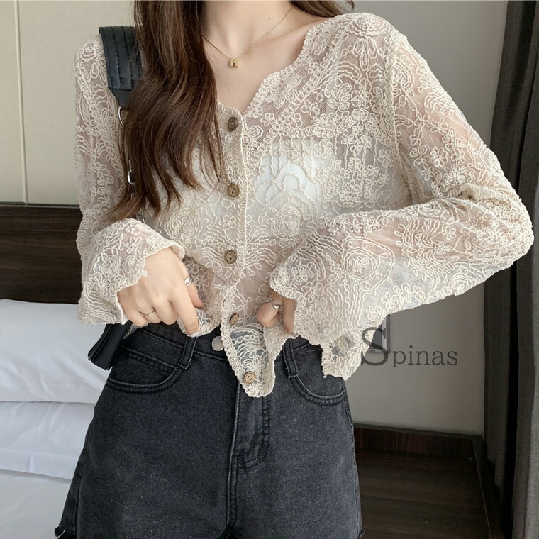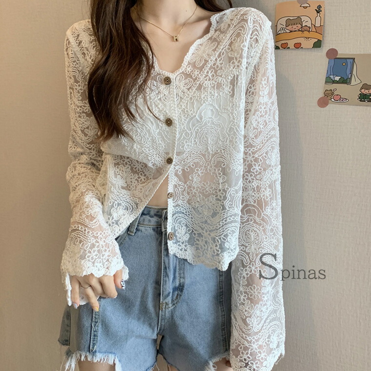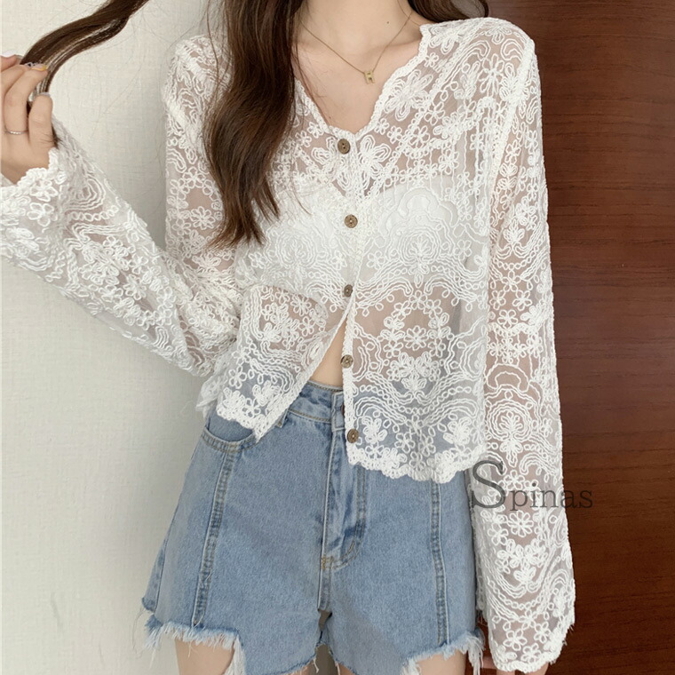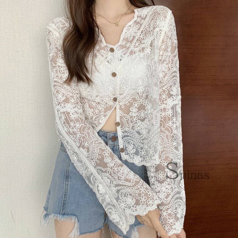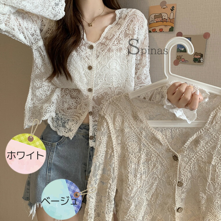 上品な透け感 総レース ショート丈カー トップス カーディガン ボレロ お買い得 ホワイト ベージュ S M L