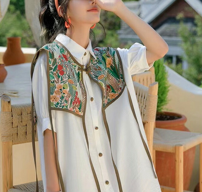シアースリーブ ドッキングシャツ ボウタイシャツブラウス