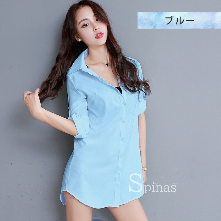 大人セクシーな ロング丈 白シャツ ワ レディースファッション 続々登場 ホワイト ブルー ピンク S M L XL 2XL 3XL 4XL 5XL