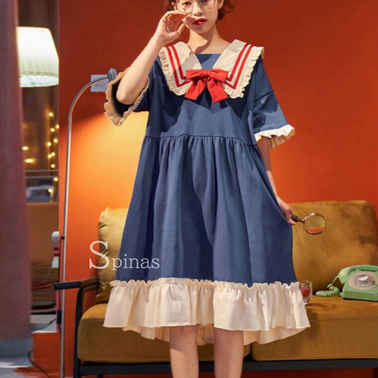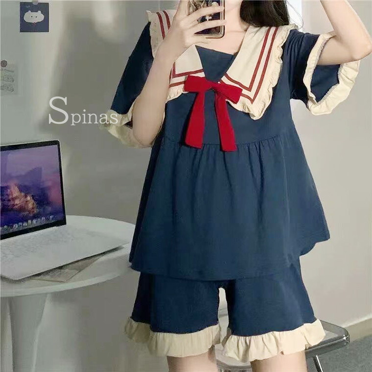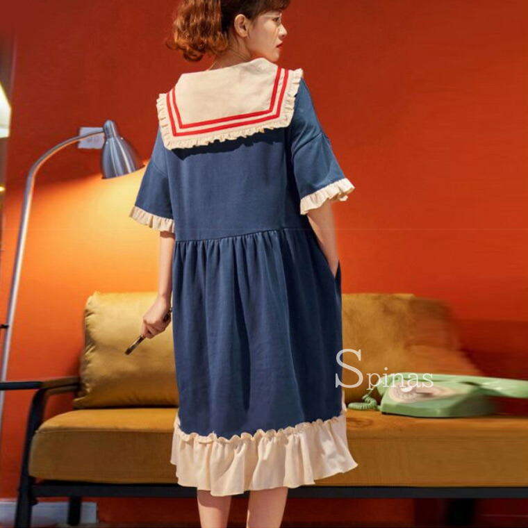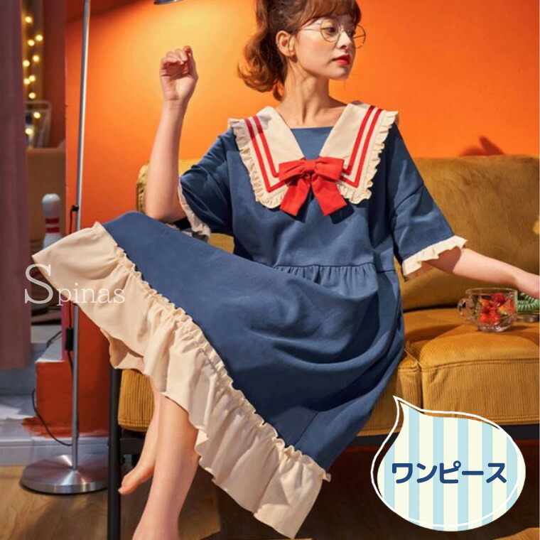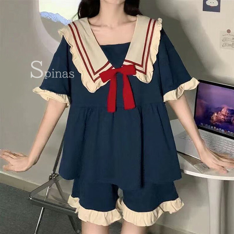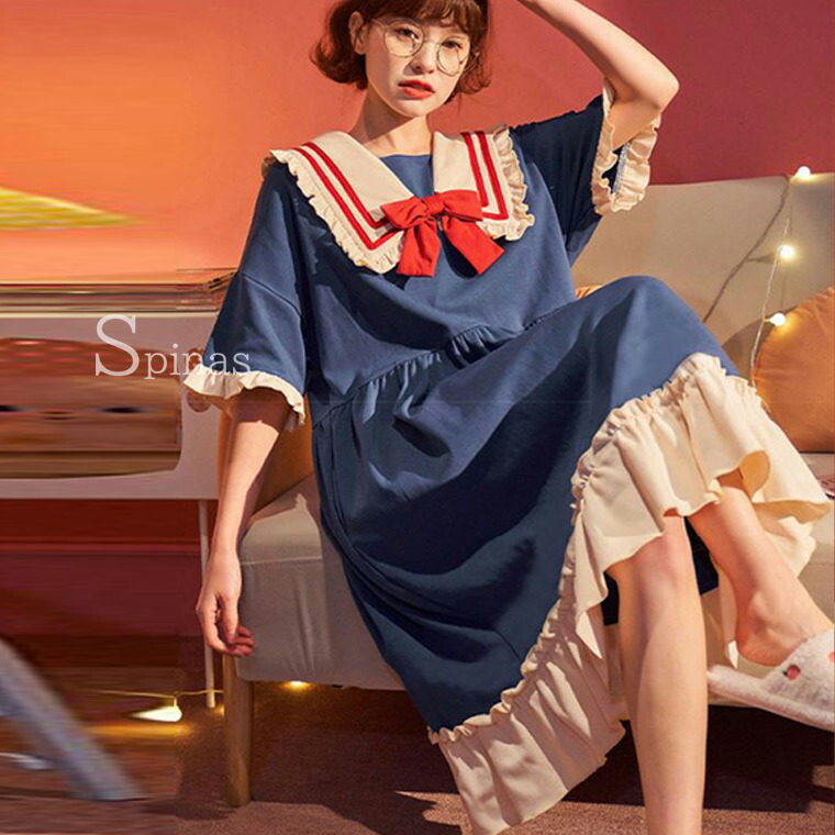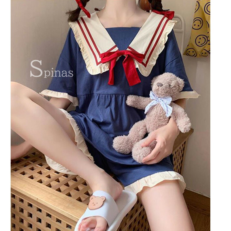 セーラー服みたいな可愛いパジャマ 寝る インナー 下着 ナイトウエア 割引 M L XL 2XL ツーピース ワンピース