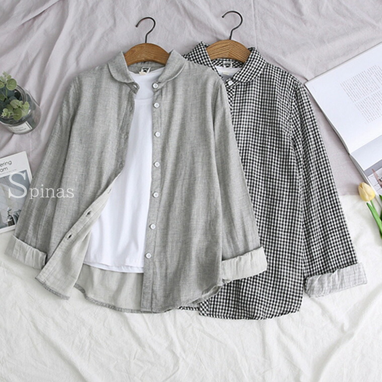 個性的で可愛らしい印象をつくる 丸襟ブ レディースファッション お得なセール S M L XL ホワイト ギンガム ネイビー グレー