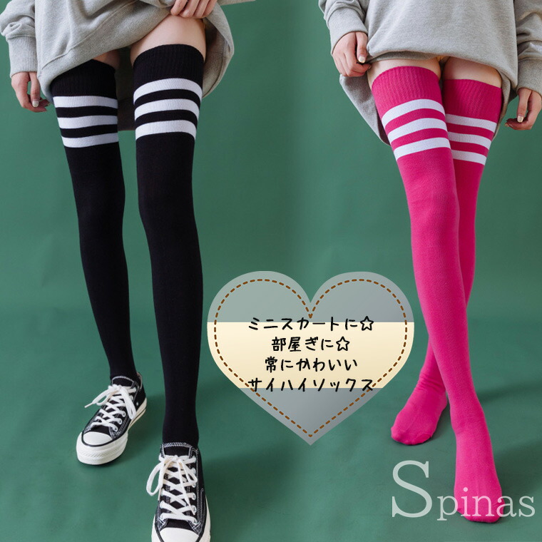 超ロング ボーダー サイハイソックス インナー 下着 ナイトウエア 豊富 ブラック ホワイト ブルー ピンク ボーダー 3ライン