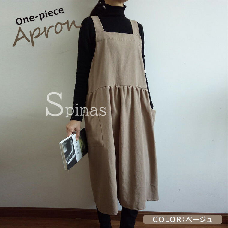 エプロン ワンピース 106cm丈 ナ キッチン用品 食器 調理器具 割引 オフホワイト ベージュ