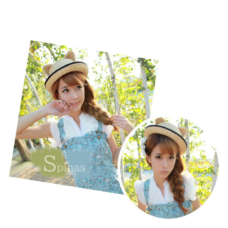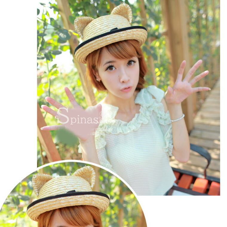 猫耳つき 麦わら帽子 大人用と子供用 カンカン帽 麦わら キャップ レディース ネコ耳 ハット 帽子 耳付き 光沢感 アクセサリー 小物 ねこみみ ねこ耳 子供用 大人用