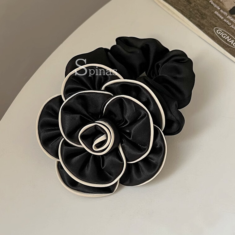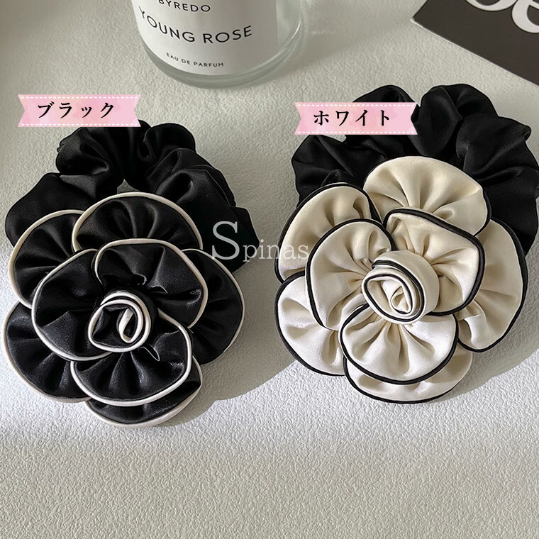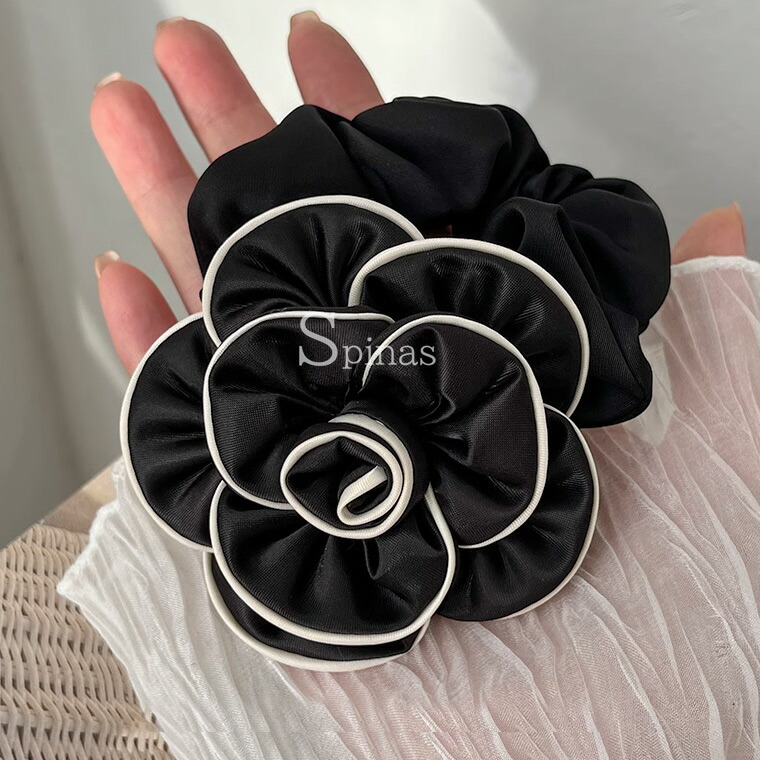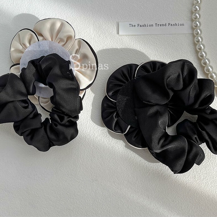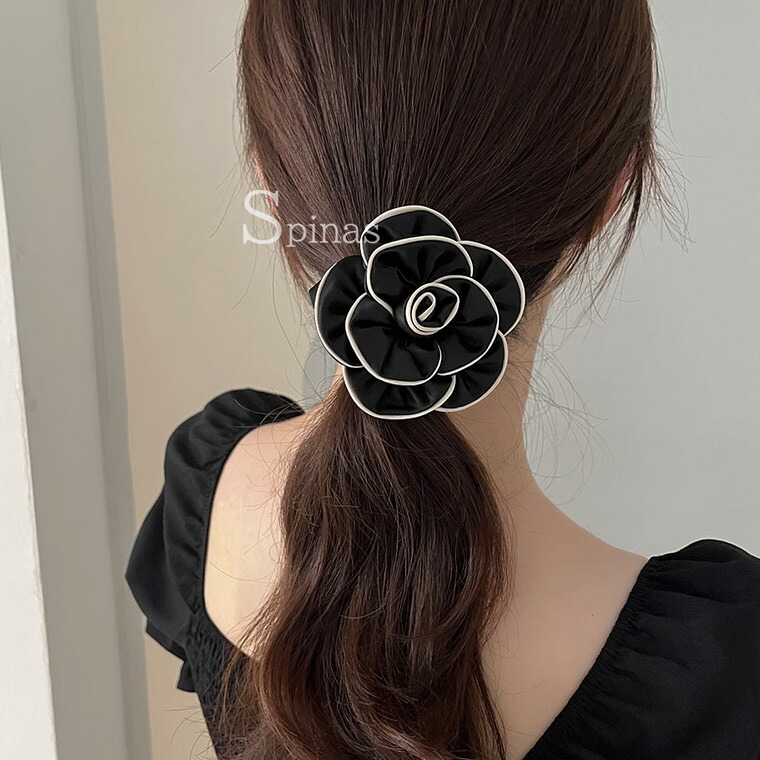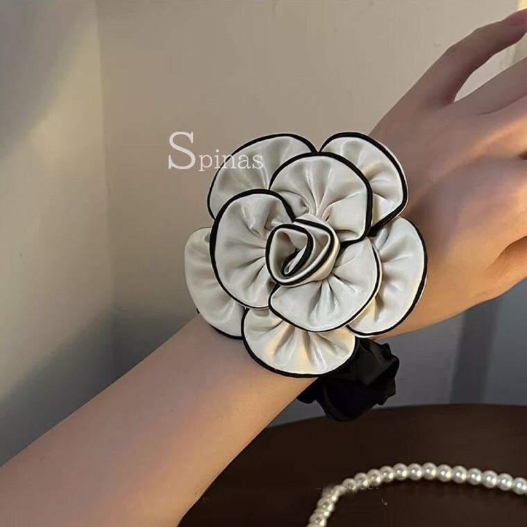 2個セット 特大カメリア サテンシュシ ジュエリー アクセサリー 豊富 ブラック2個 ホワイト2個 ブラック&ホワイト