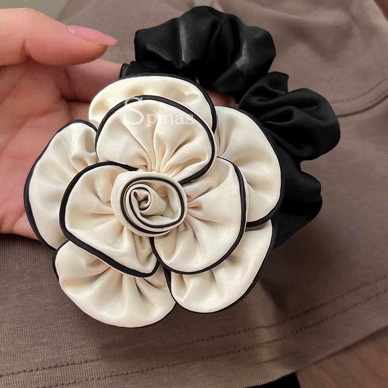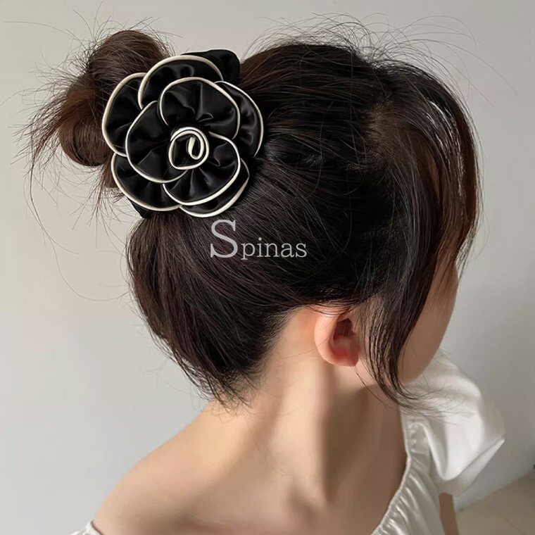 2個セット 特大カメリア サテンシュシュ 縁取り バイカラー 花 フラワー モチーフ ブランド マーク クリップ 大きめ 高見え セレブ リボン ビッグリボン バレッタ バンスクリップ ヘアアクセサリ