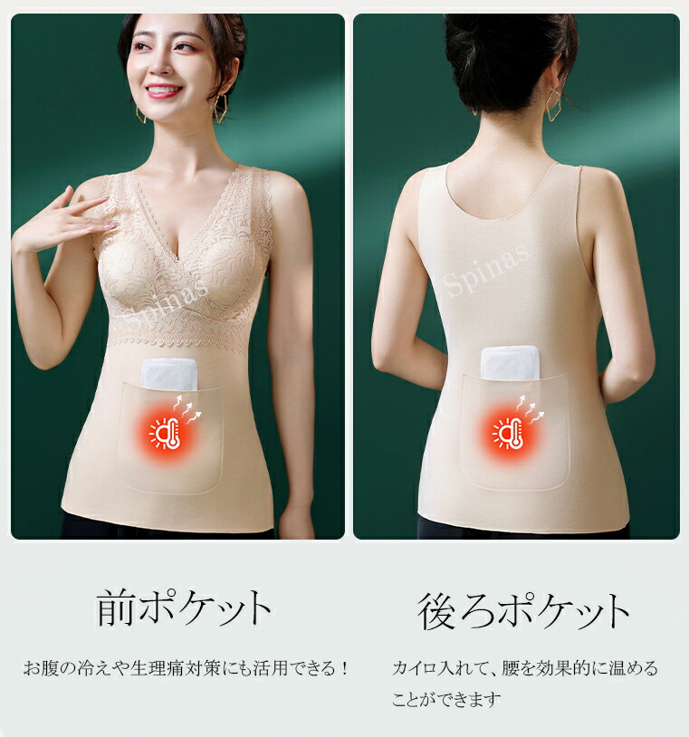 寒い外出やアウトドアシーン、冷え性の方 トップス タンクトップ お得なセール XL 2XL 3XL 4XL 5XL 6XL ブラック ピンク ベージュ