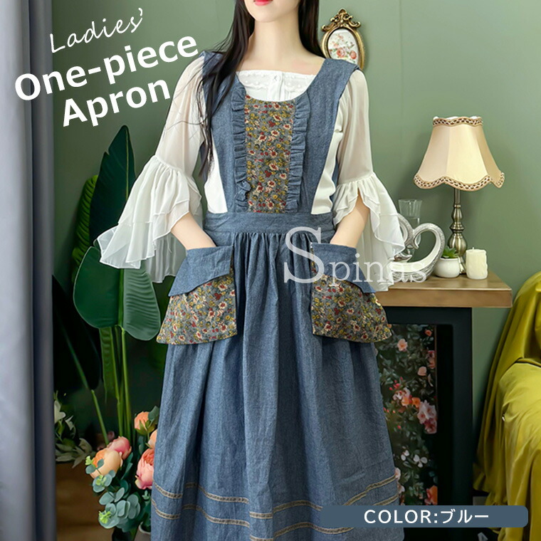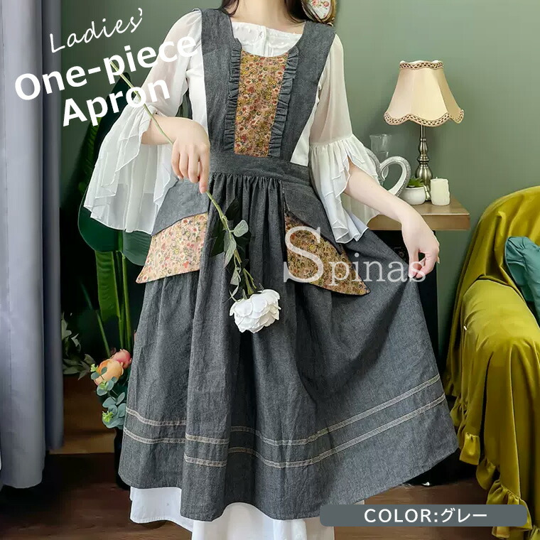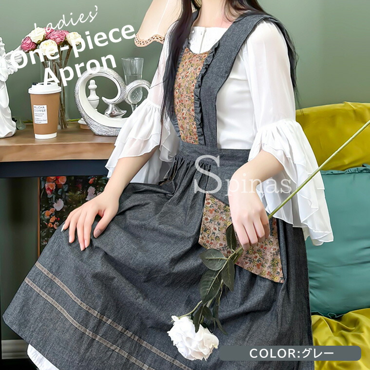 花屋とカフェの雰囲気があるオシャレなデ 配膳用品 キッチンファブリック エプロン 三角巾 エプロン 49%Off グレー ブルー
