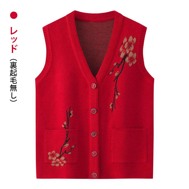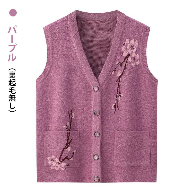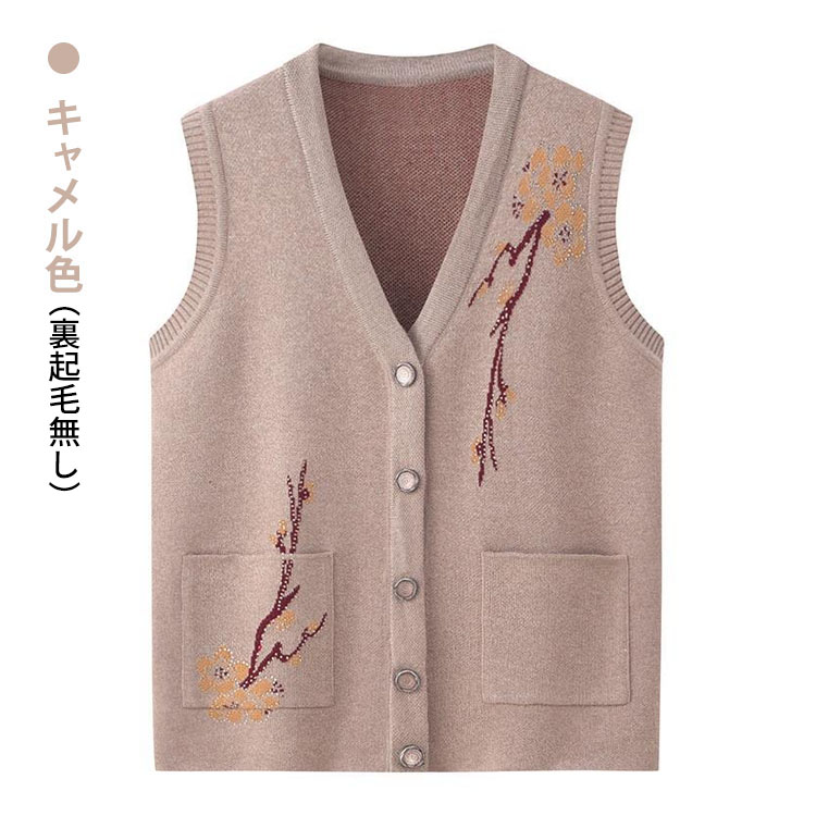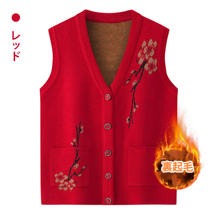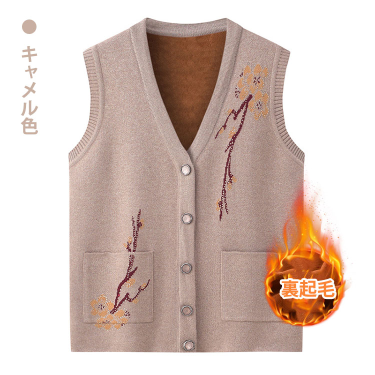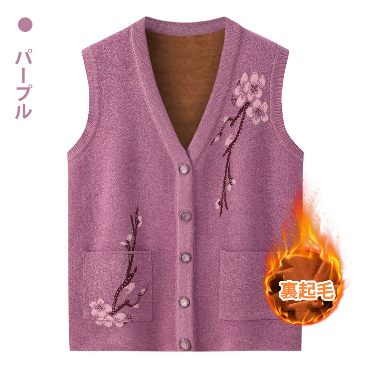 秋冬 おばあちゃん用裏起毛ニットベスト
