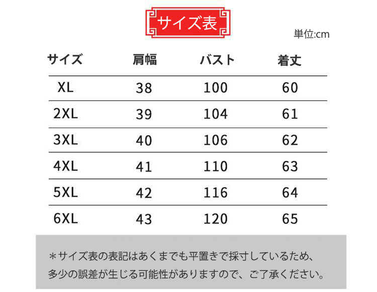 サイズ: XL 2XL 3XL 4XL 5XL 6XL