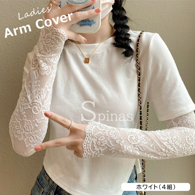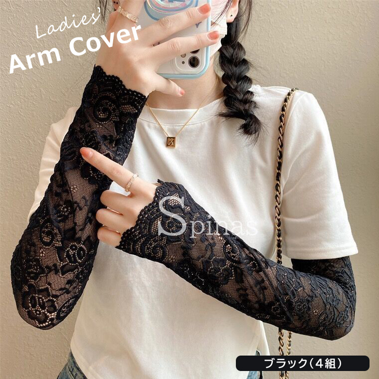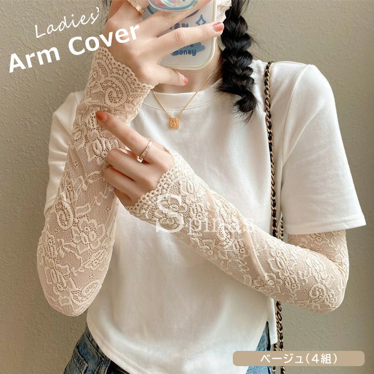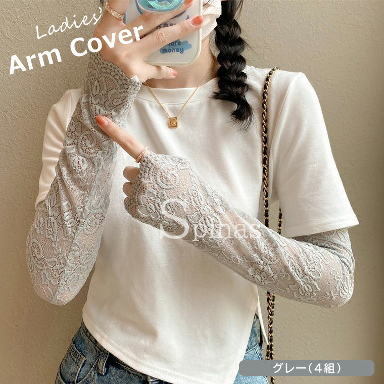 花柄 レース ロング丈 総レース レデ 手袋 アームウォーマー アームウォーマー 豊富 ベージュ(4組) ホワイト(4組) ブラック(4組) グレー(4組)