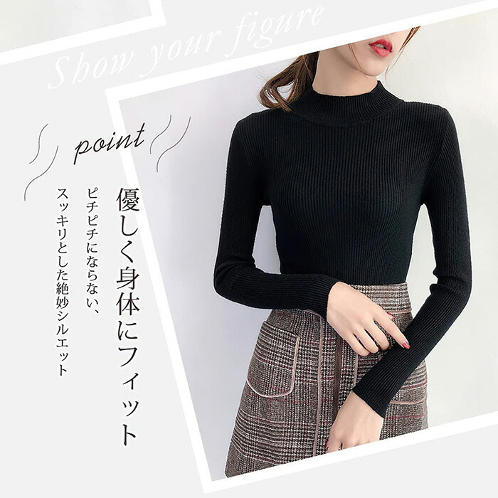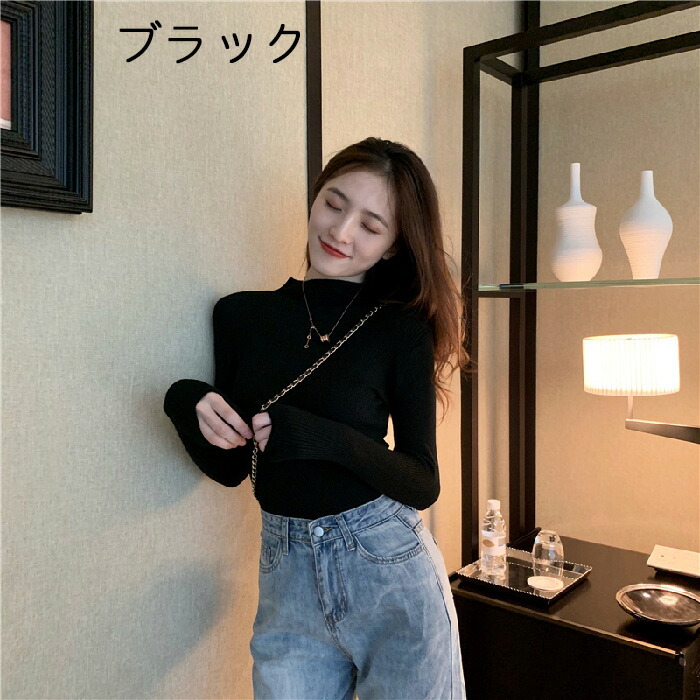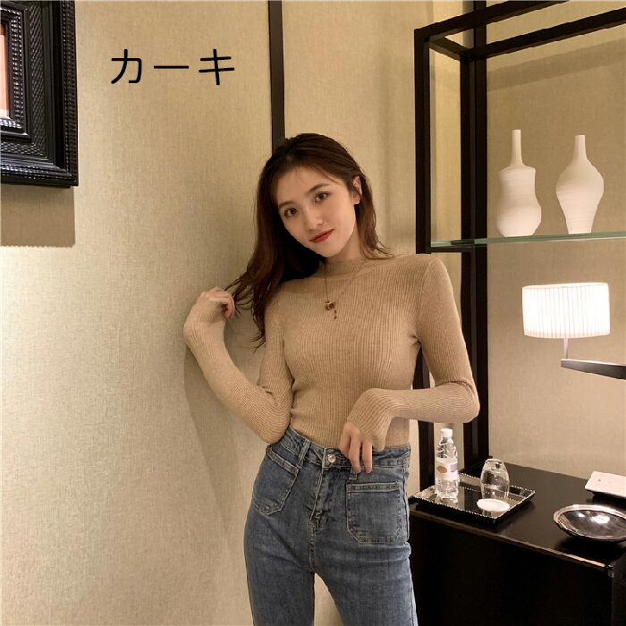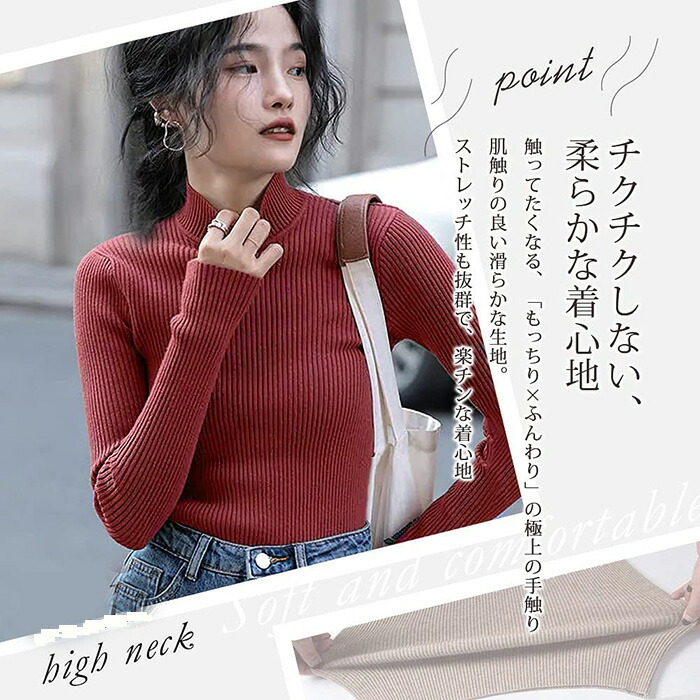 リブニット レディース セーター 2021秋冬 重ね着に便利な薄手リブ素材 着回し力 高伸縮 ニットソー カットソー ハイネック 長袖 トップス ニット リブ 秋 冬 ストレッチ シンプル 8色展開