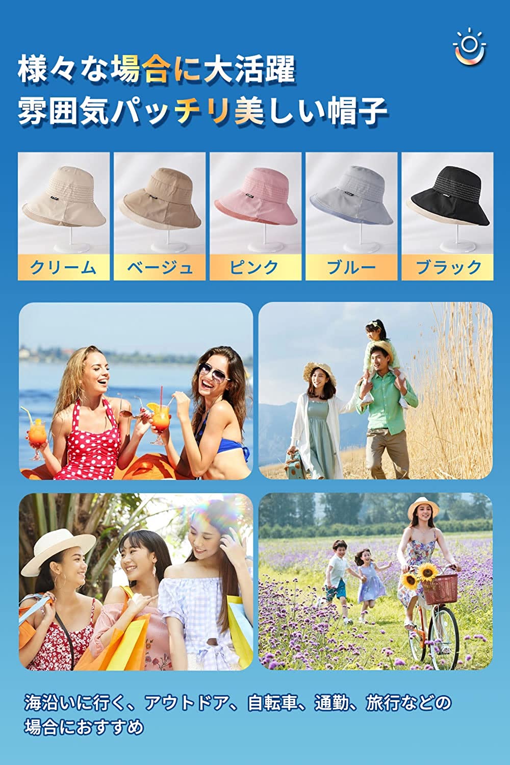 UVカット 帽子 レディース 紫外線対 バッグ 小物 ブランド雑貨 続々登場 ブラック ブルー ピンク クリ一ム べ一ジコ