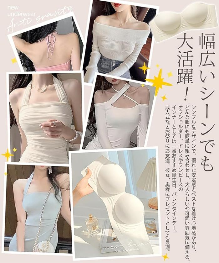 【毎日愛用されるブラになる】AOYのストラップレスブラはシンプルなデザインで、優れた安定感とベストな着け心地感があり、どんな服にも簡単に組み合わせし、何シーズンにも欠かなくて、大人らしいや可愛い雰囲気に備えるストラップレスブラです。誕生日、バレンタインデー、成人式などお祭りにお友達、彼女、奥様にプレゼントとしても最適なストラップレスブラです。