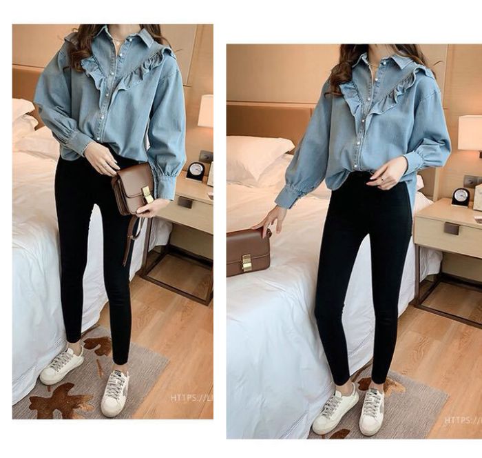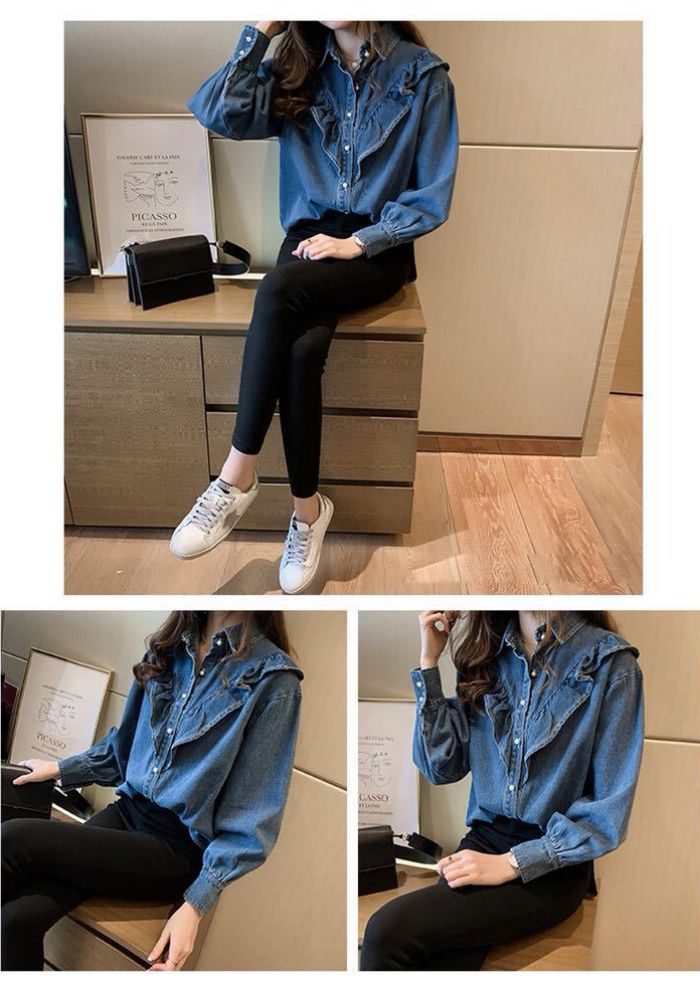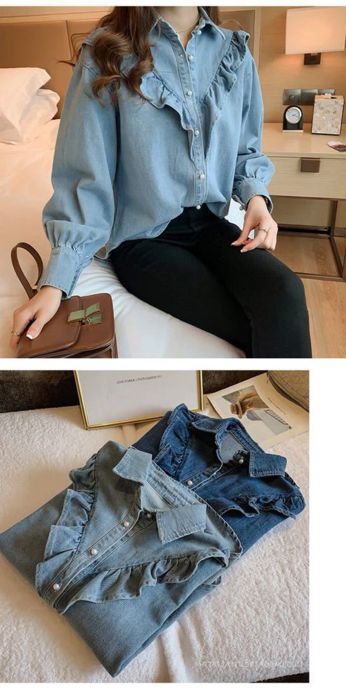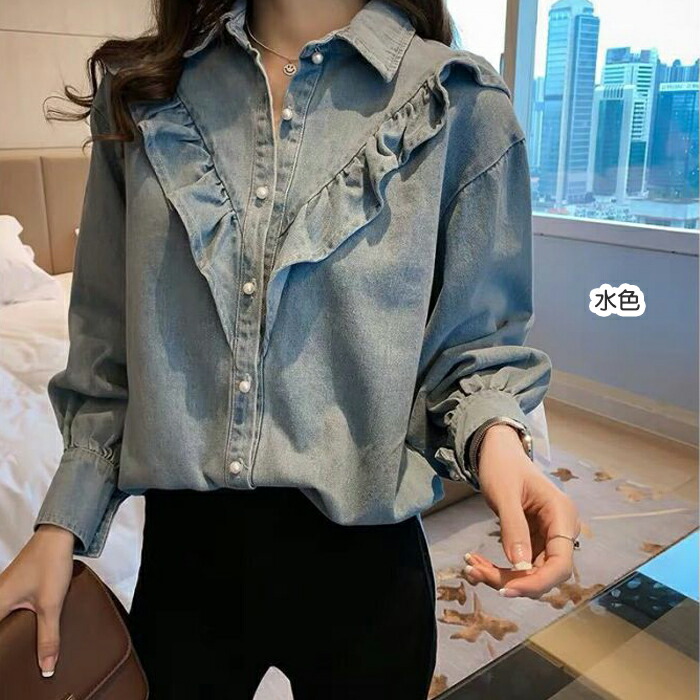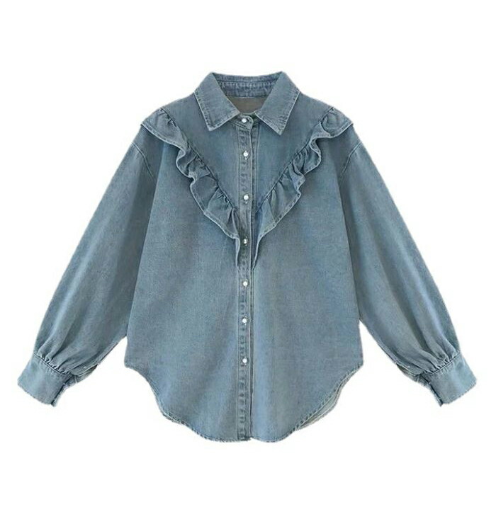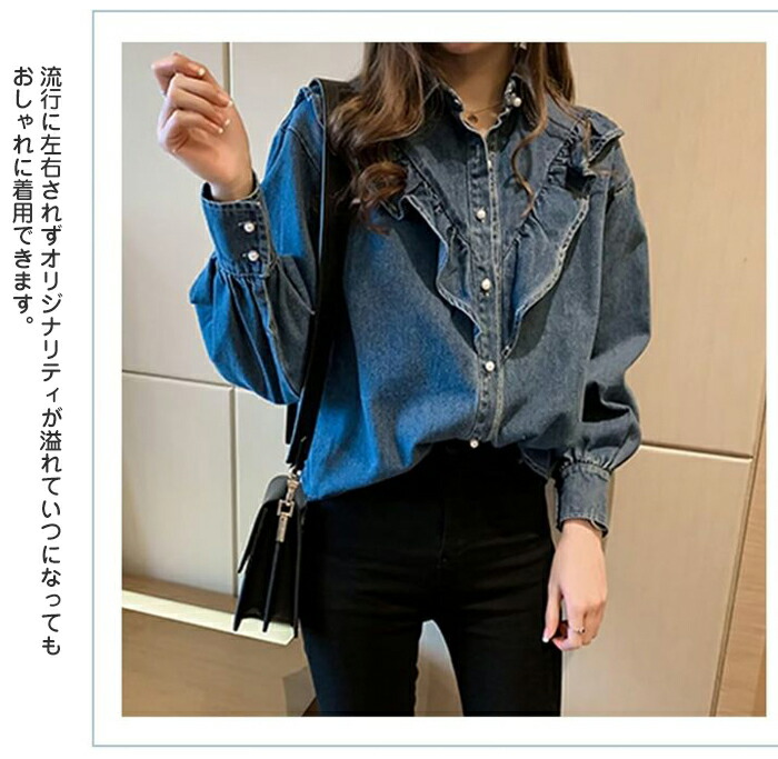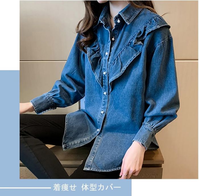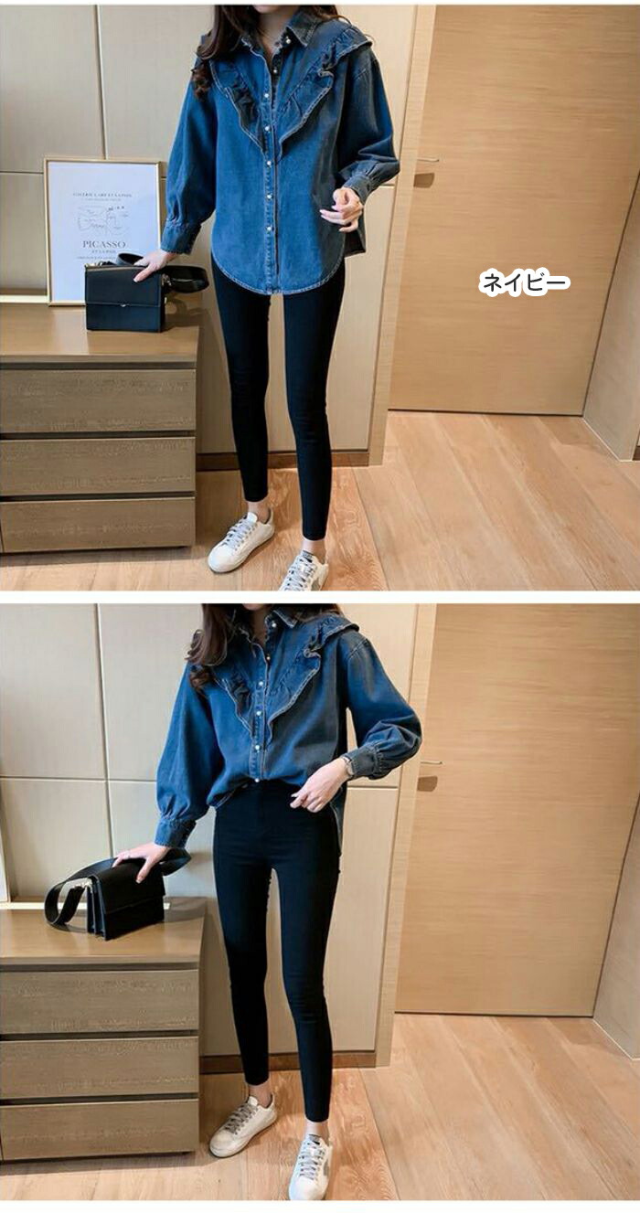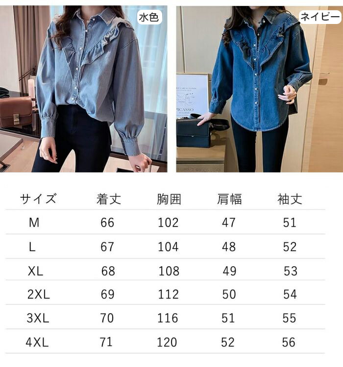 デニムシャツ レディース 長袖 ゆった トップス シャツ ブラウス 続々登場 ネイビー 水色 M L XL 2XL 3XL 4XL