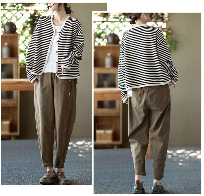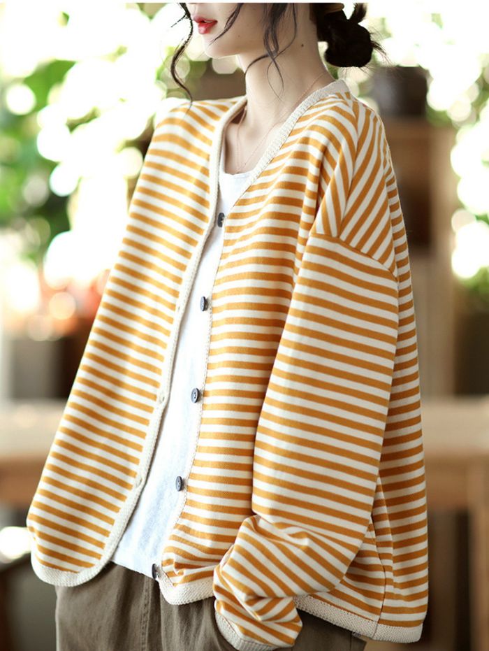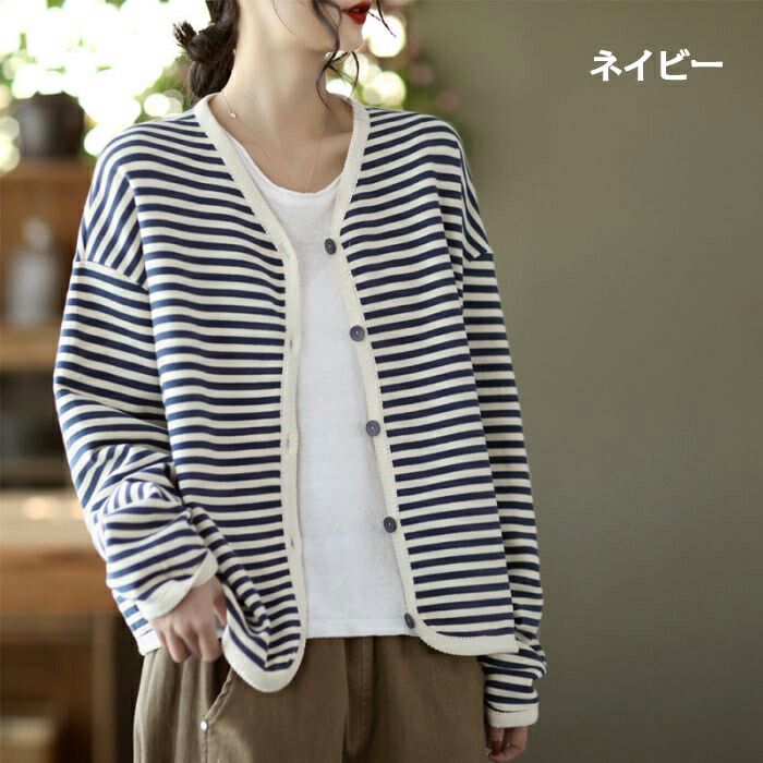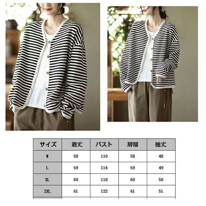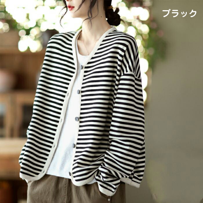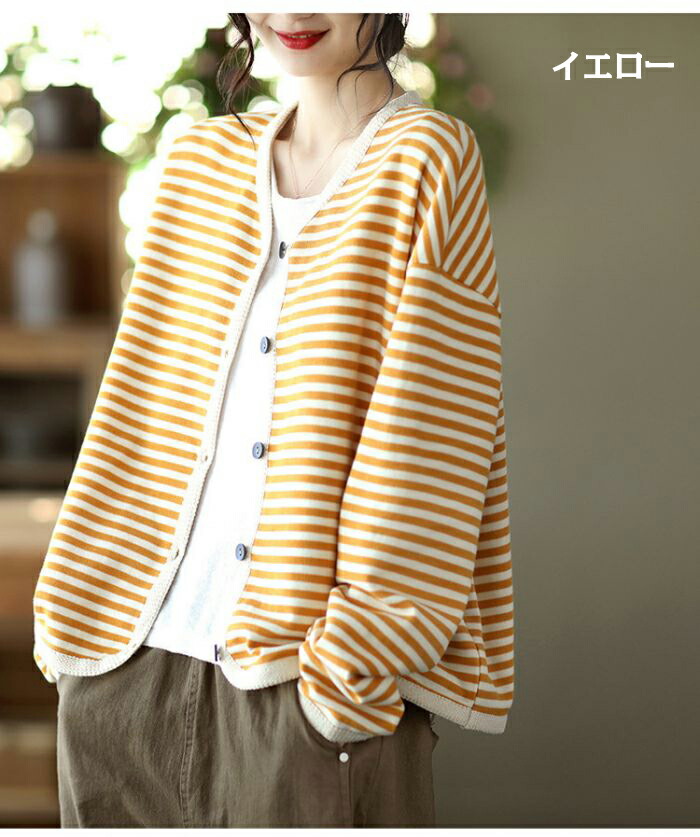 カーディガン レディース 秋冬 ボーダ レディースファッション お買い得 イエロー ブラック ネイビー M L XL 2XL