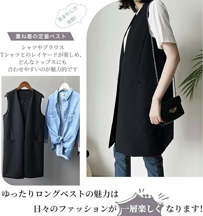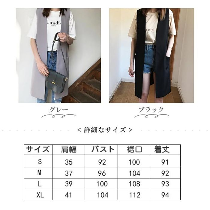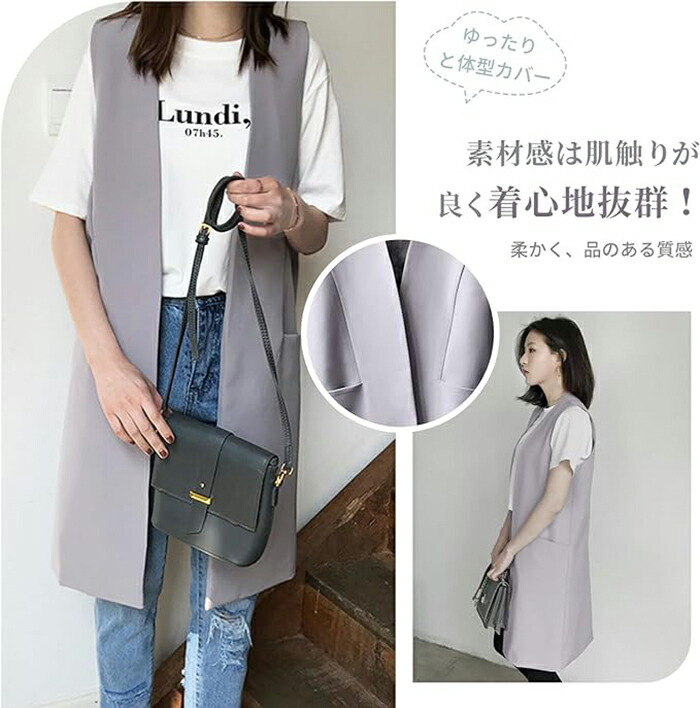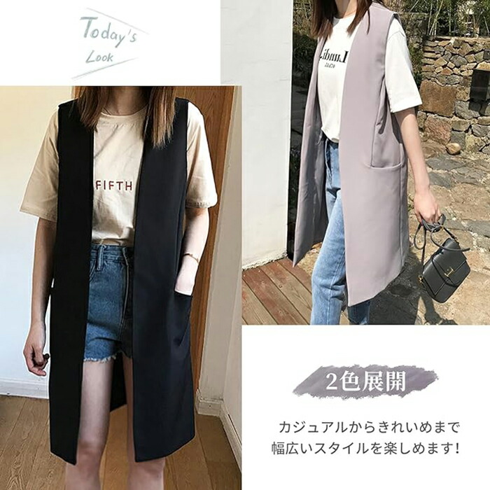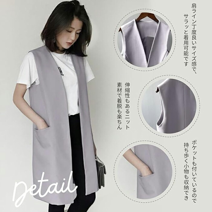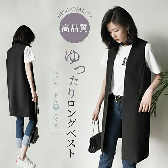 ジレ レディース ロング ベスト ロン トップス ベスト 豊富な品揃え ブラック グレー S M L XL