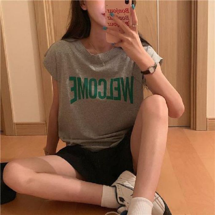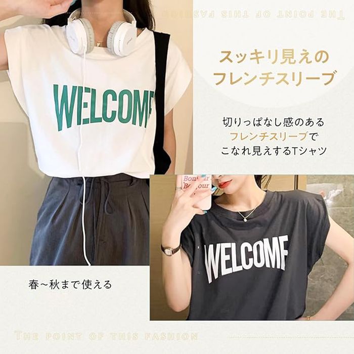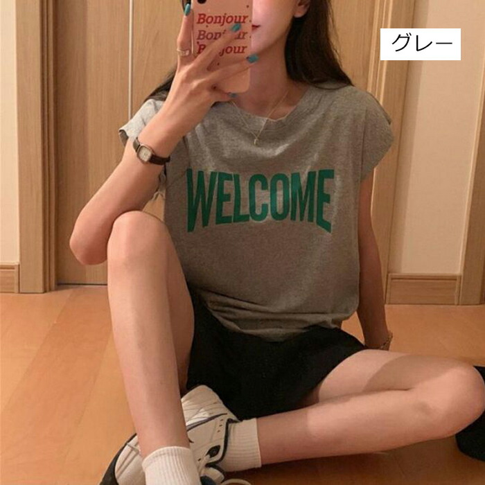 Tシャツ ロゴ フレンチスリーブ レデ レディースファッション お得なセール グレー ホワイト ブラック M L XL 2XL