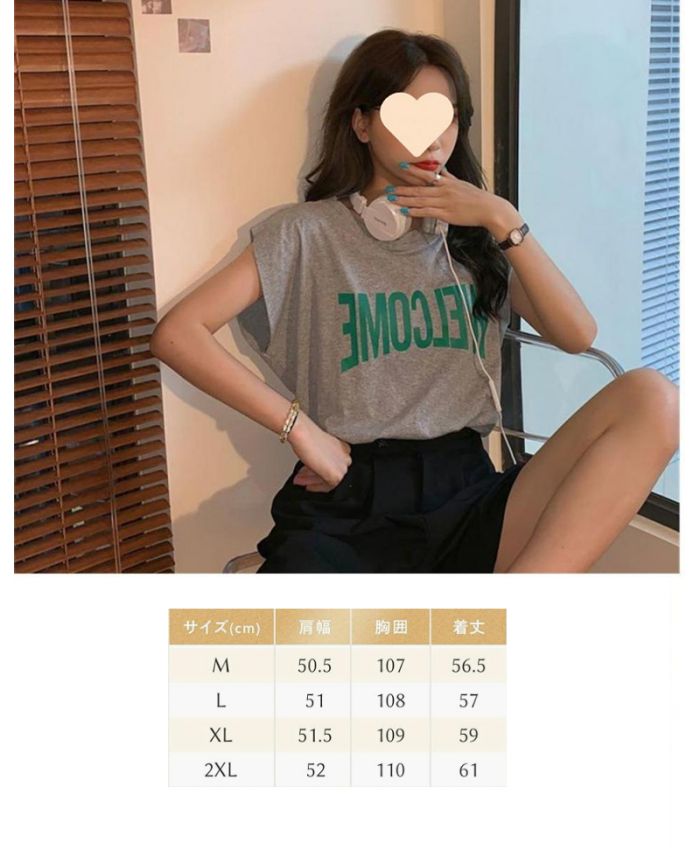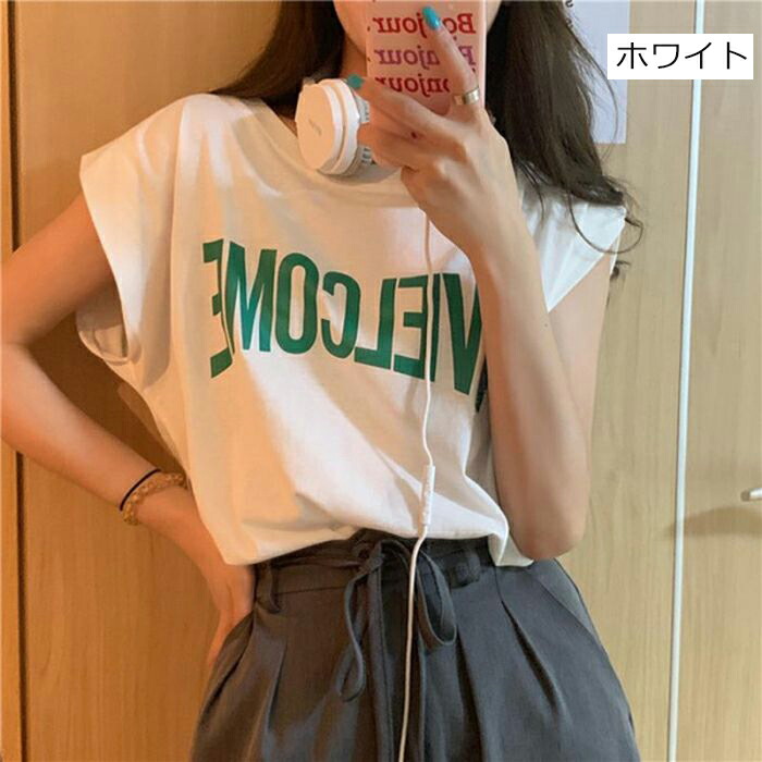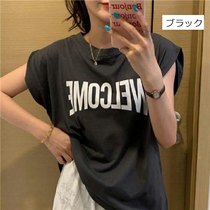 タンクトップレディースTシャツノースリーブUネックロゴプリント