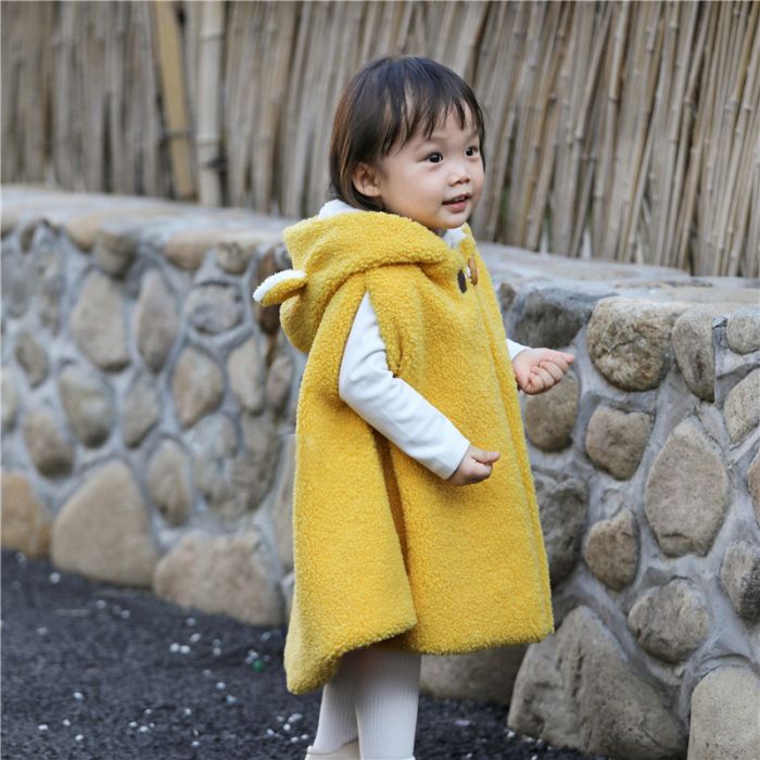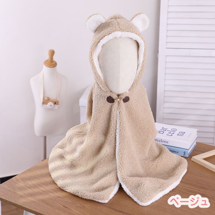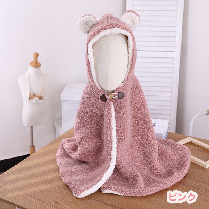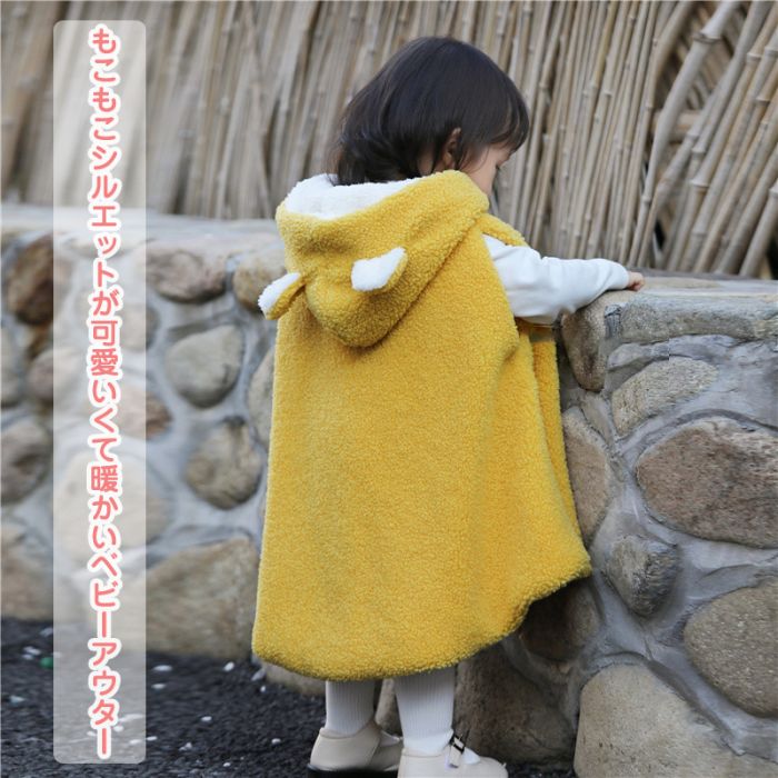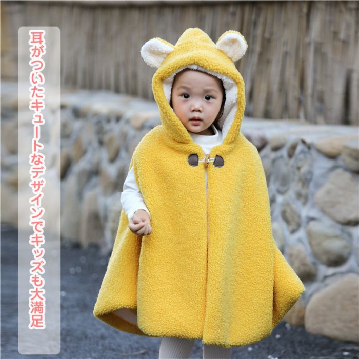 ポンチョ キッズ 防寒 もこもこ コー キッズ ベビー マタニティ 新作 イエロー ピンク ベージュ グレー ブルー