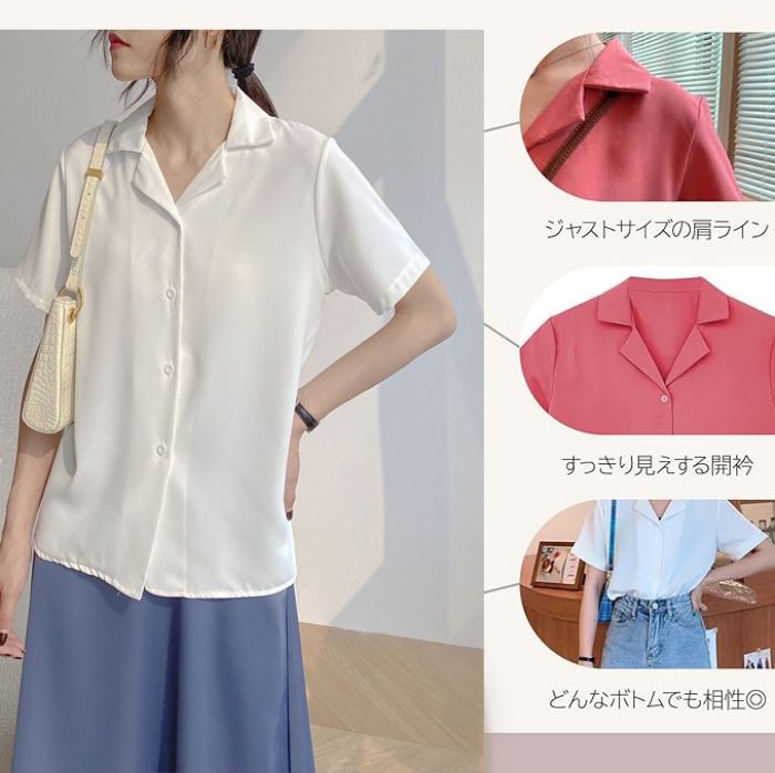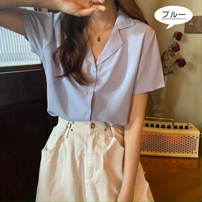 ブラウス シャツ 半袖 レディース ト レディースファッション 続々登場 グリーン ベージュ ホワイト レッド ブラック ブルー S M L XL 2XL