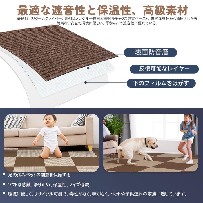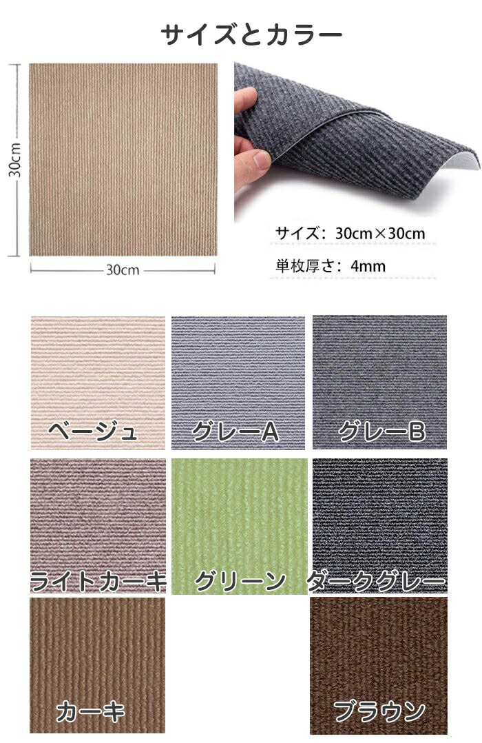 タイルマット ジョイントマット カーペ ベージュ グレーA グレーB ダークグレー ライトカーキ カーキ ブラウン グリーン