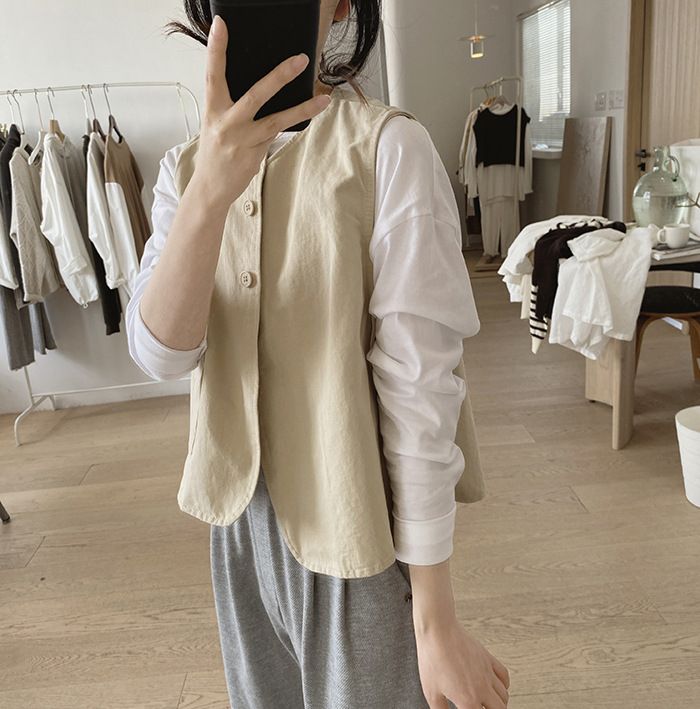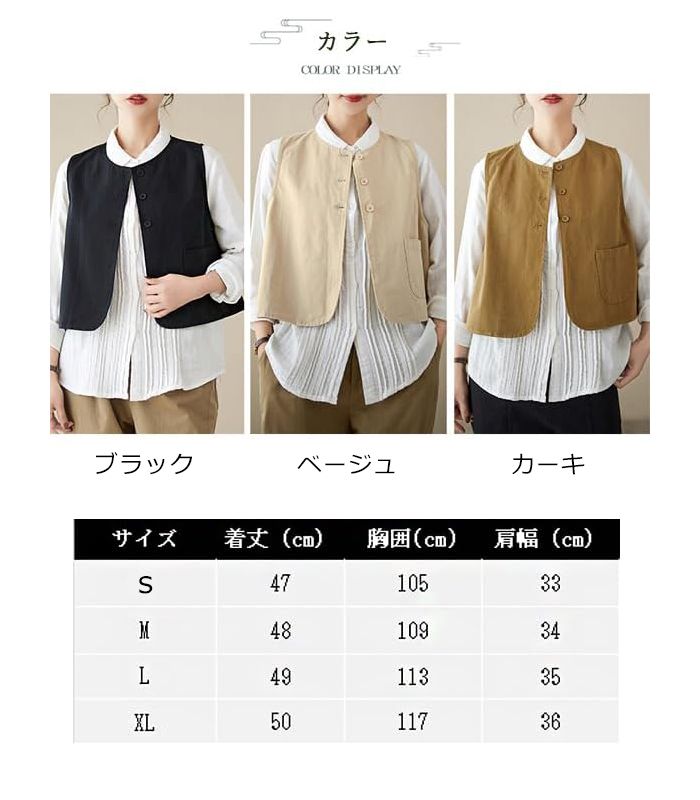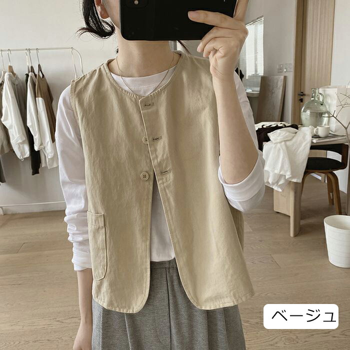 ベスト レディース 夏 前開き チョッ トップス ベスト 豊富 ブラック ベージュ カーキ S M L XL