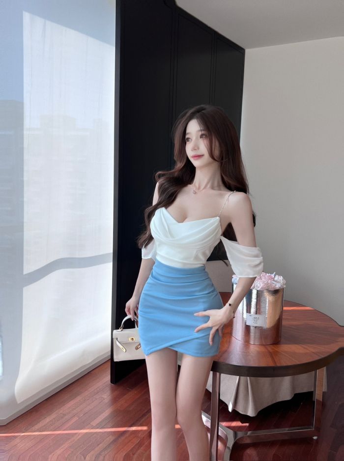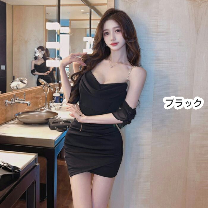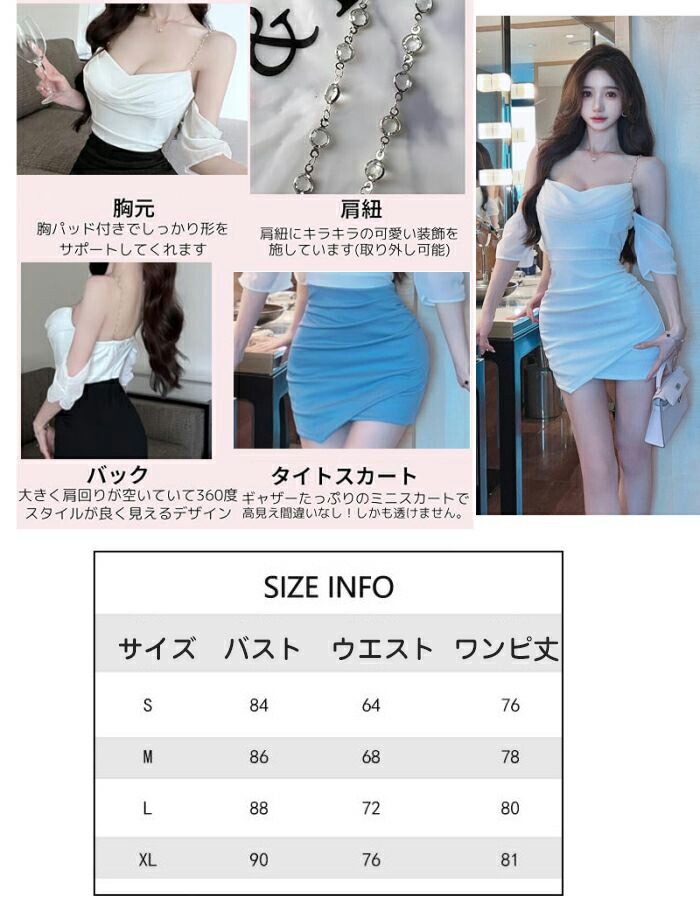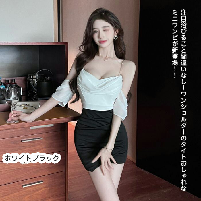 オフショルダー ドレス シフォン 肩出 ドレス 続々登場 ホワイトブラック ホワイトブルー ホワイト ブラック S M L XL