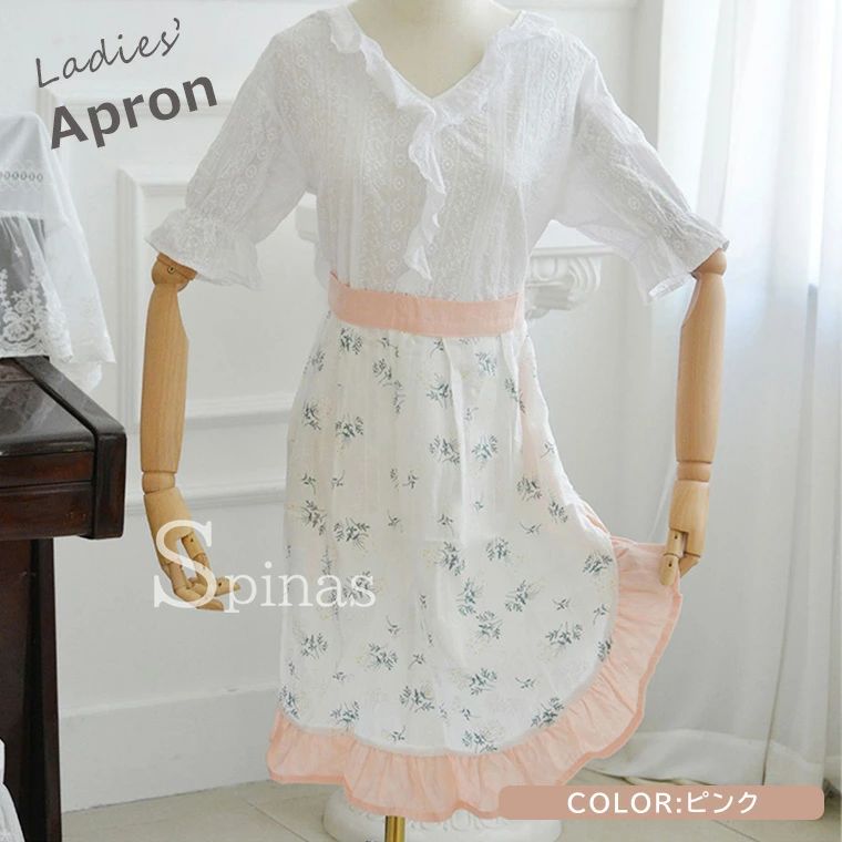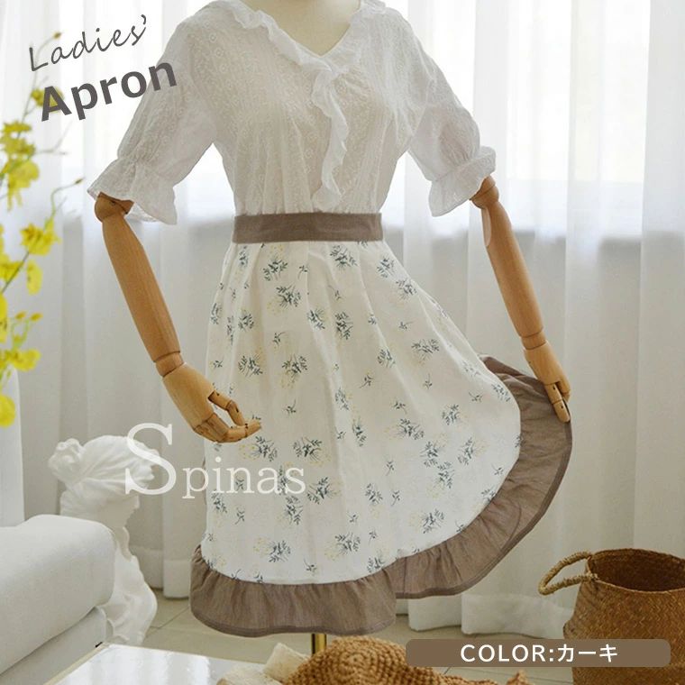 優しいが花柄が上品な雰囲気に 全4色 配膳用品 キッチンファブリック エプロン 三角巾 エプロン 割引 ライトグリーン ダークグリーン ピンク カーキ