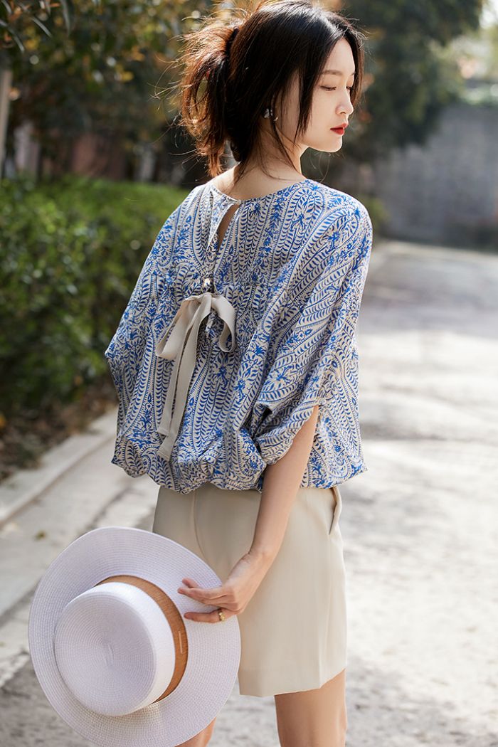 ブラウス レディース おしゃれ 透けな レディースファッション 割引 ブルー レッド S M L XL 2XL